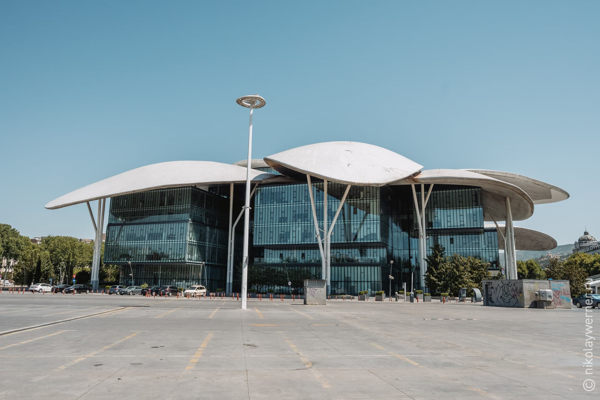 Вышли к дому Юстиции. Одному из спорных архитектурных проектов эпохи Саакашвили.