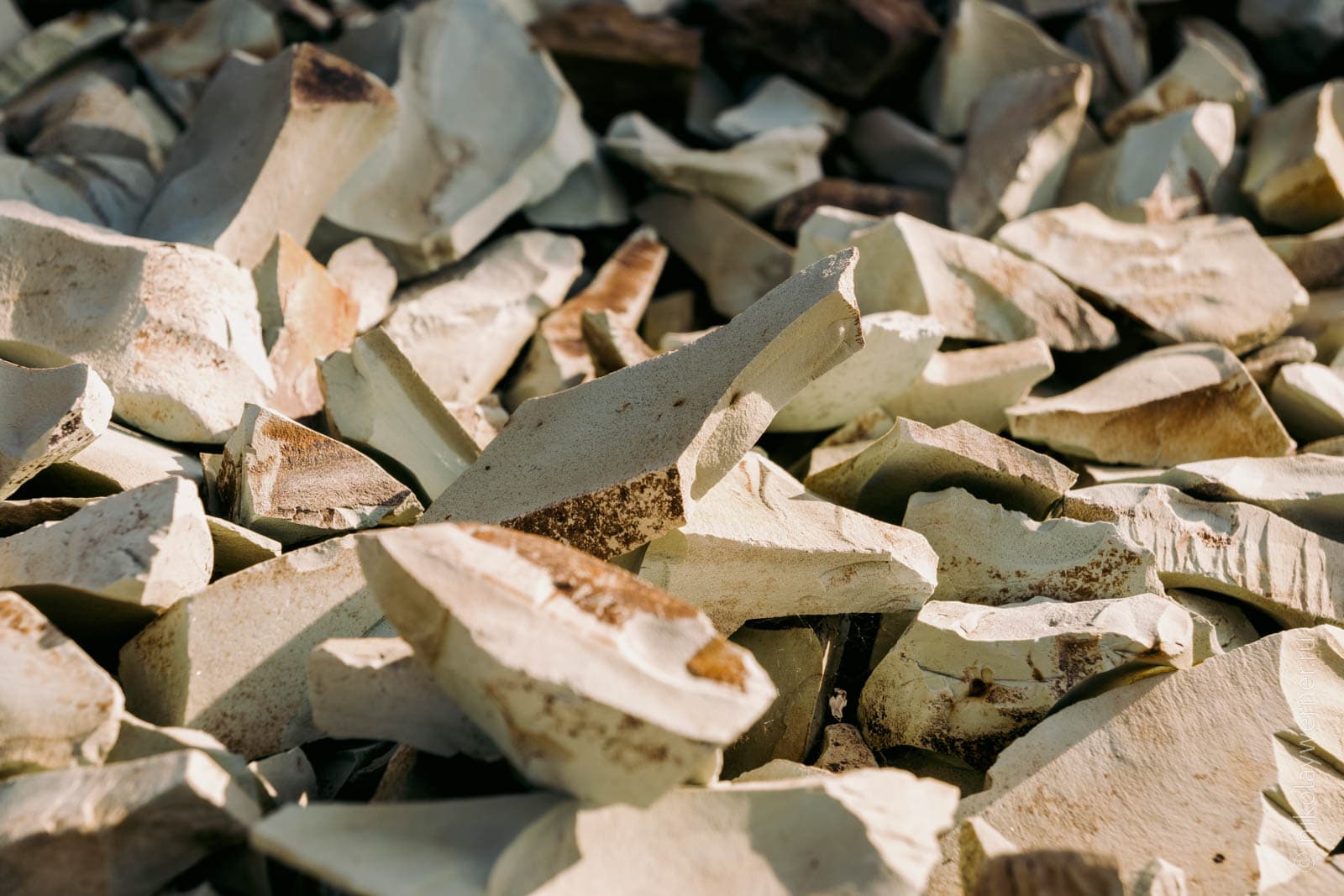А ещё под ногами много мелких камней с острыми гранями. Будто кто-то специально дробил породу и рассыпал их здесь.