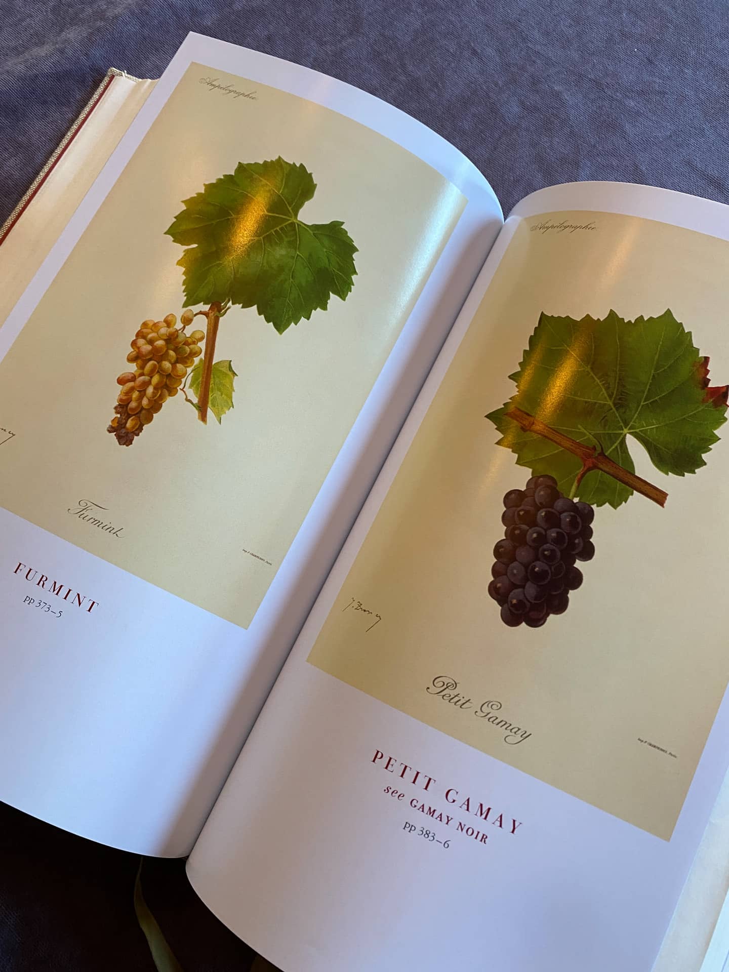 Как мы ели и пили показывать не буду, а вот прекрасный разворот книги про винные лозы, найденной на ресторанной полке, покажу.