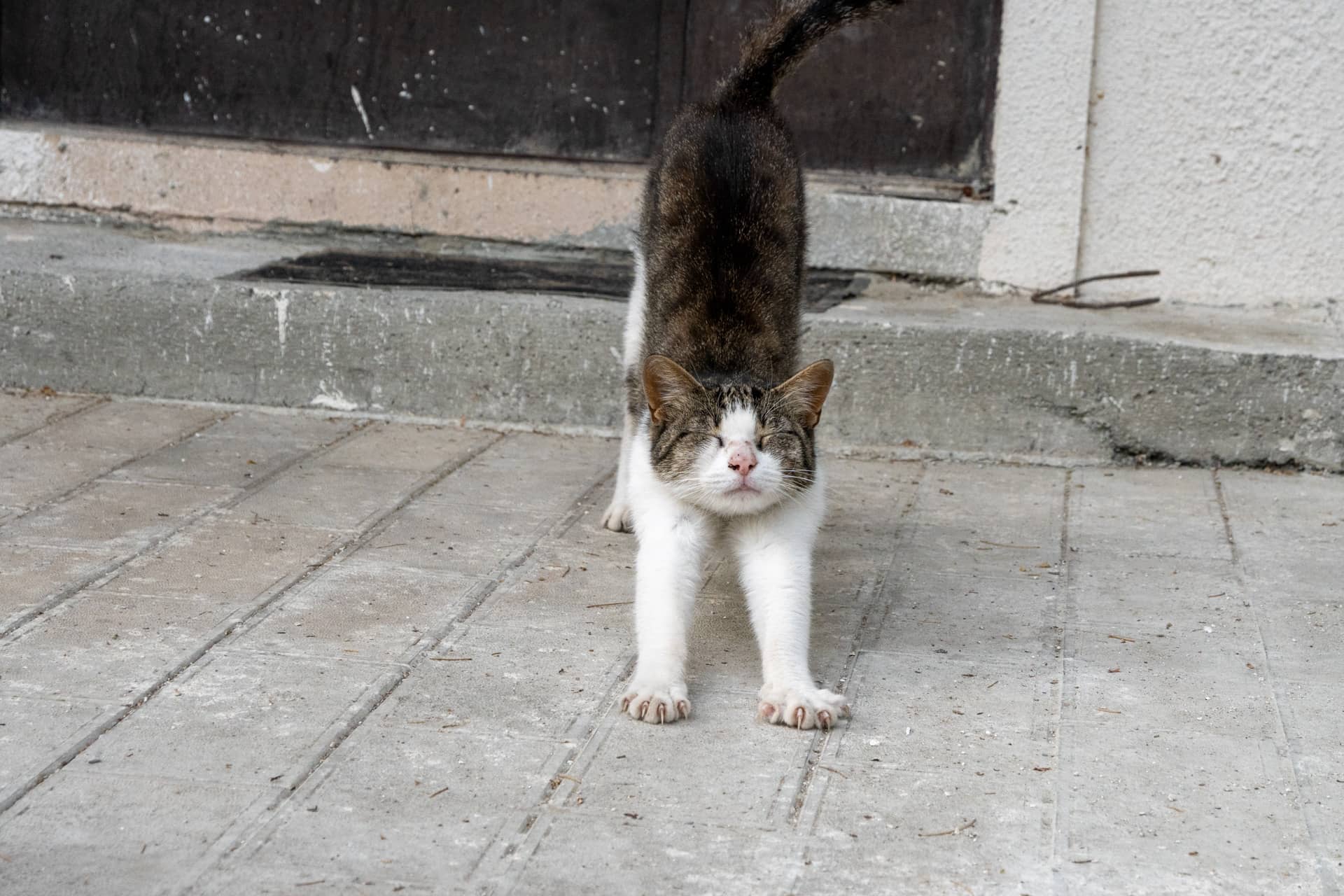 Котейка потягивается.