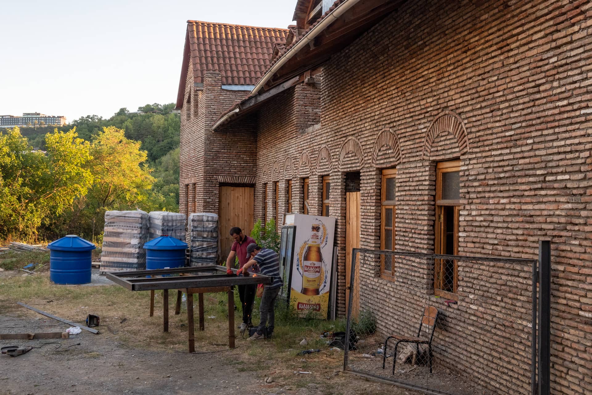 Мужики что-то сваривают.