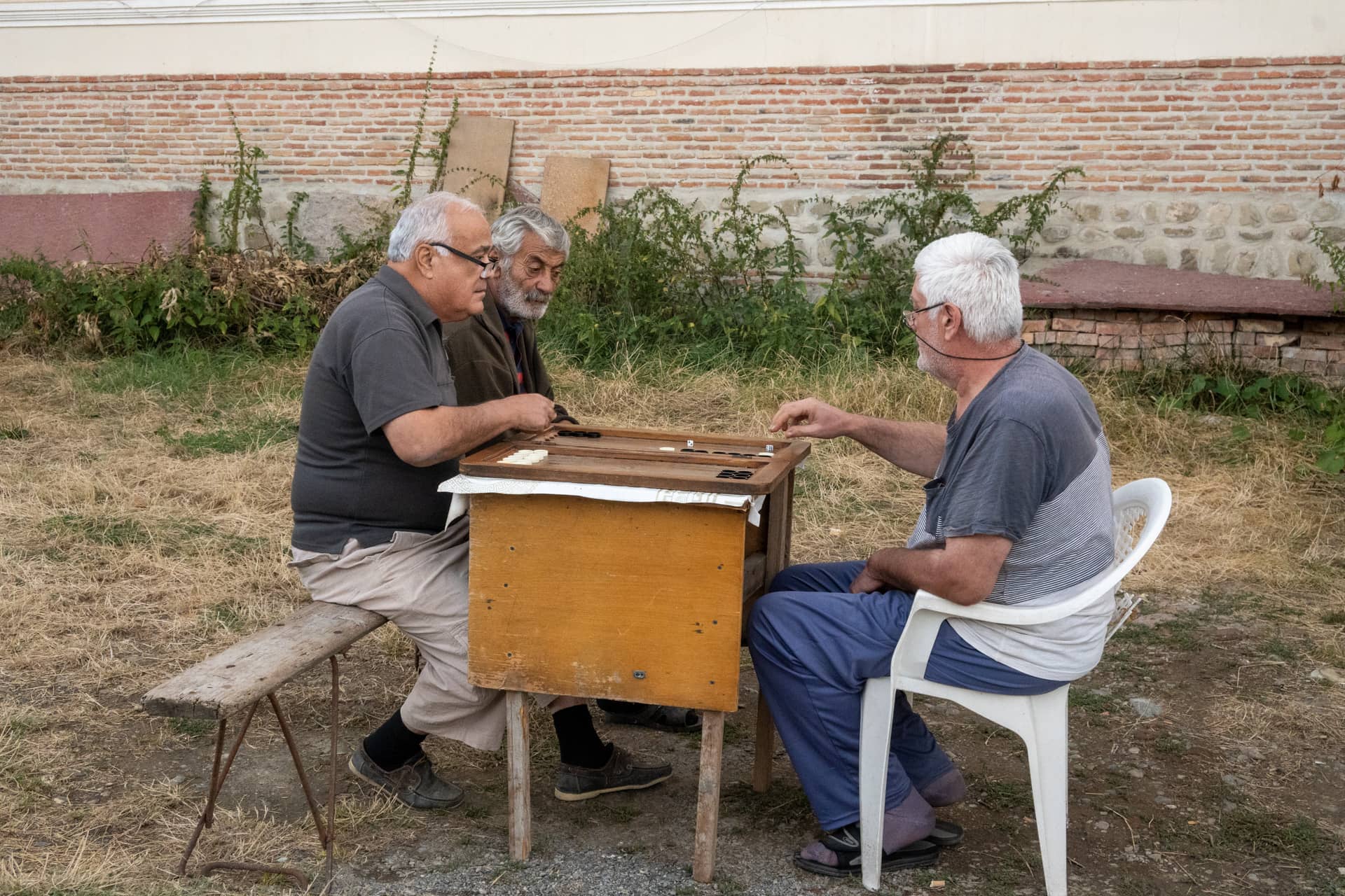 Мужики играют в нарды.