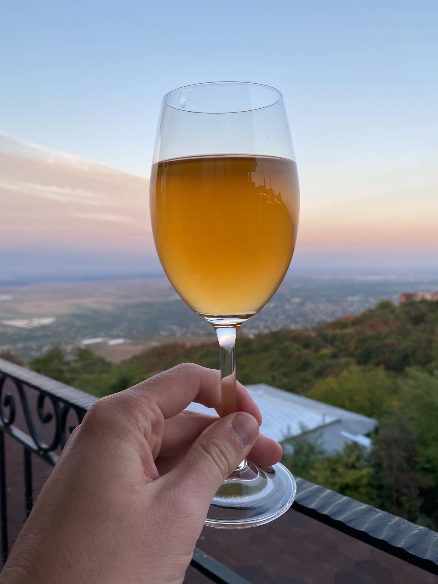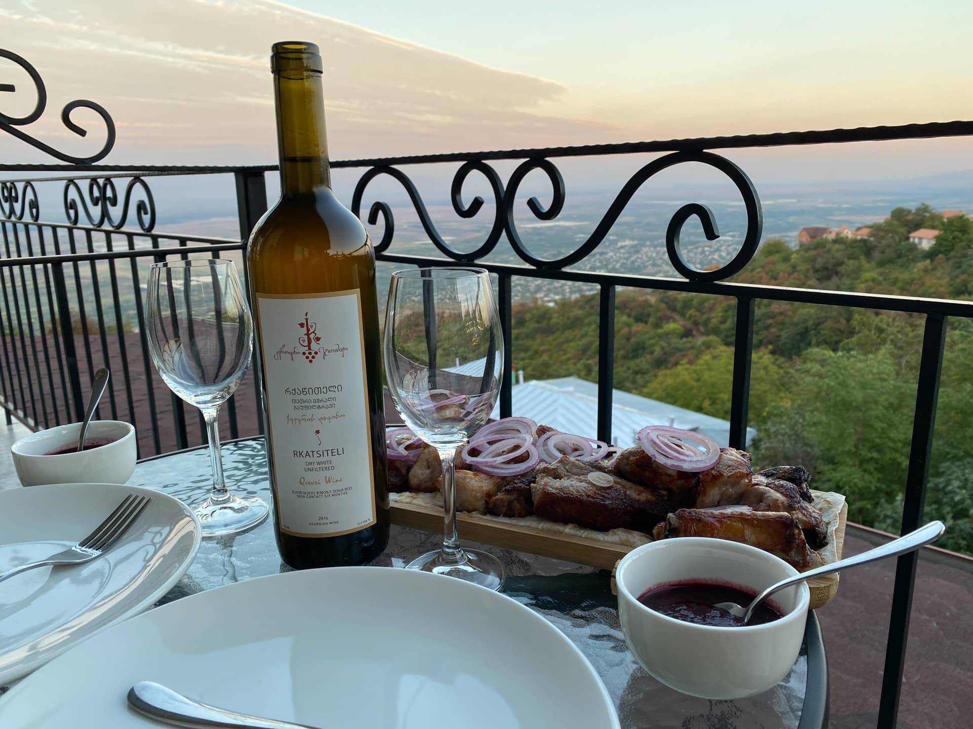 Ну а потом мы заказали шашлыка и приговорили его вместе с только что купленной бутылкой янтарного ркацители.