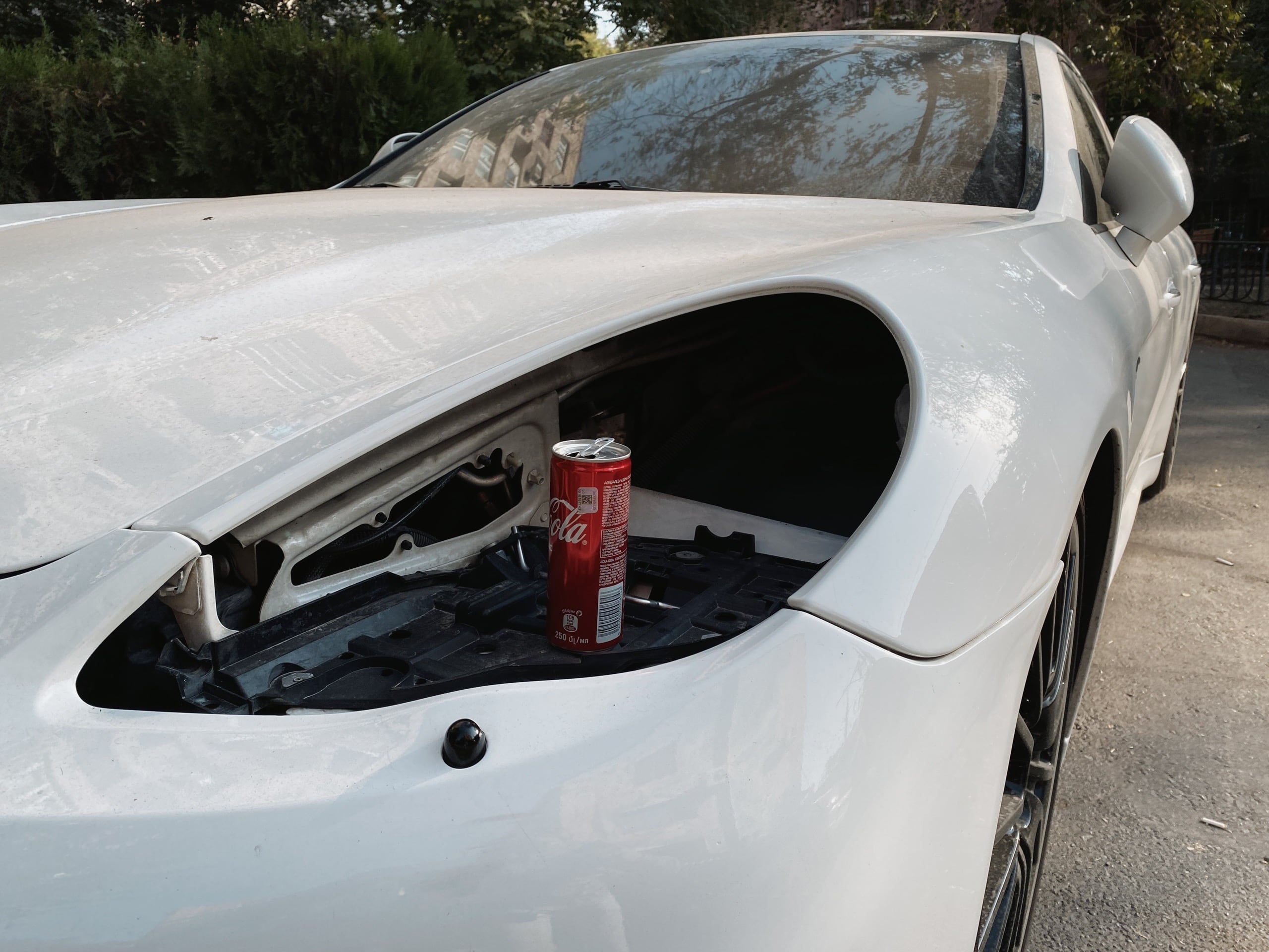 Возле кофейни стояла «Порше» без фары. Кто-то превратил изъян автомобиля в импровизированную инсталляцию.