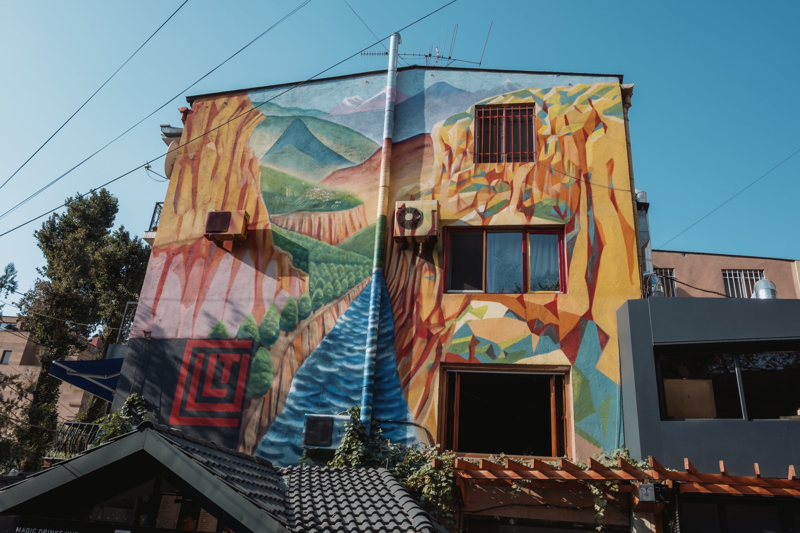 Тут же нашлось искусство подлинное, а не ироничное: на стене красовался мурал по мотивам полотна Мартироса Сарьяна «Армения».