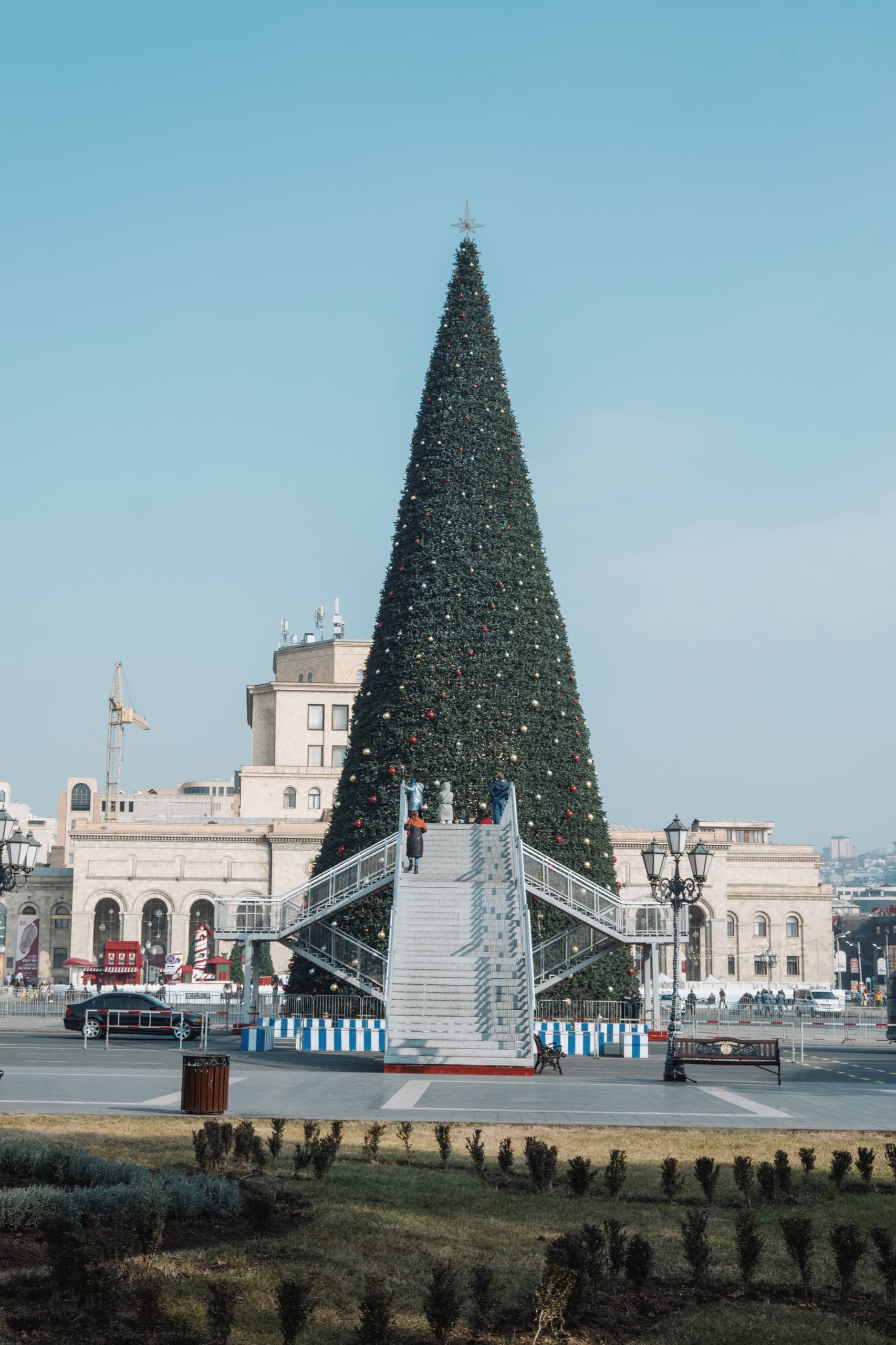 Из Конда мы вышли на улицу Сарьяна и отправились в сторону площади Республики, у которой в эти дни стояла огромная ёлка и работала городская ярмарка.