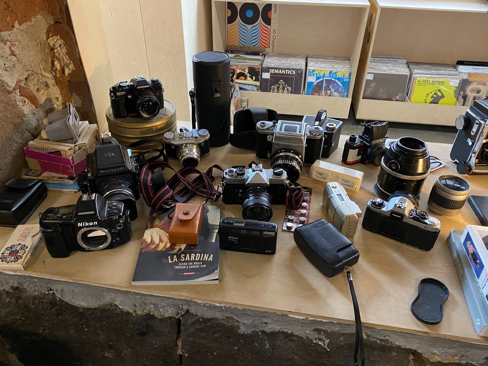 После ярмарки зашли в фотомагазин Box Lab. Оля там отдавала плёнку на проявку, а мы просто постояли, поглазели. У меня, конечно, в таких местах особенно ёкает. Так как всё хочу сам снова поснимать на плёнку, но руки не доходят. Даже фотоаппарата ещё нет.