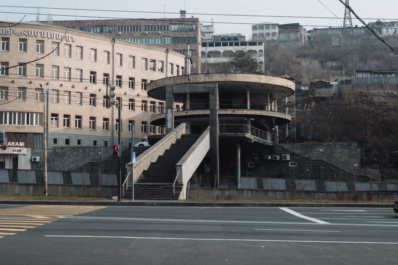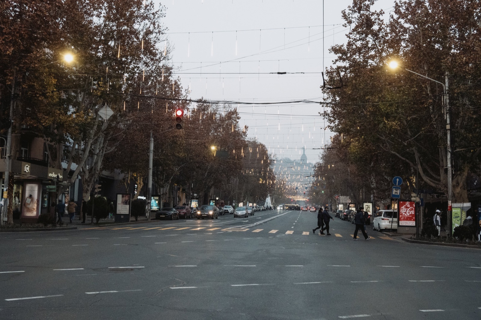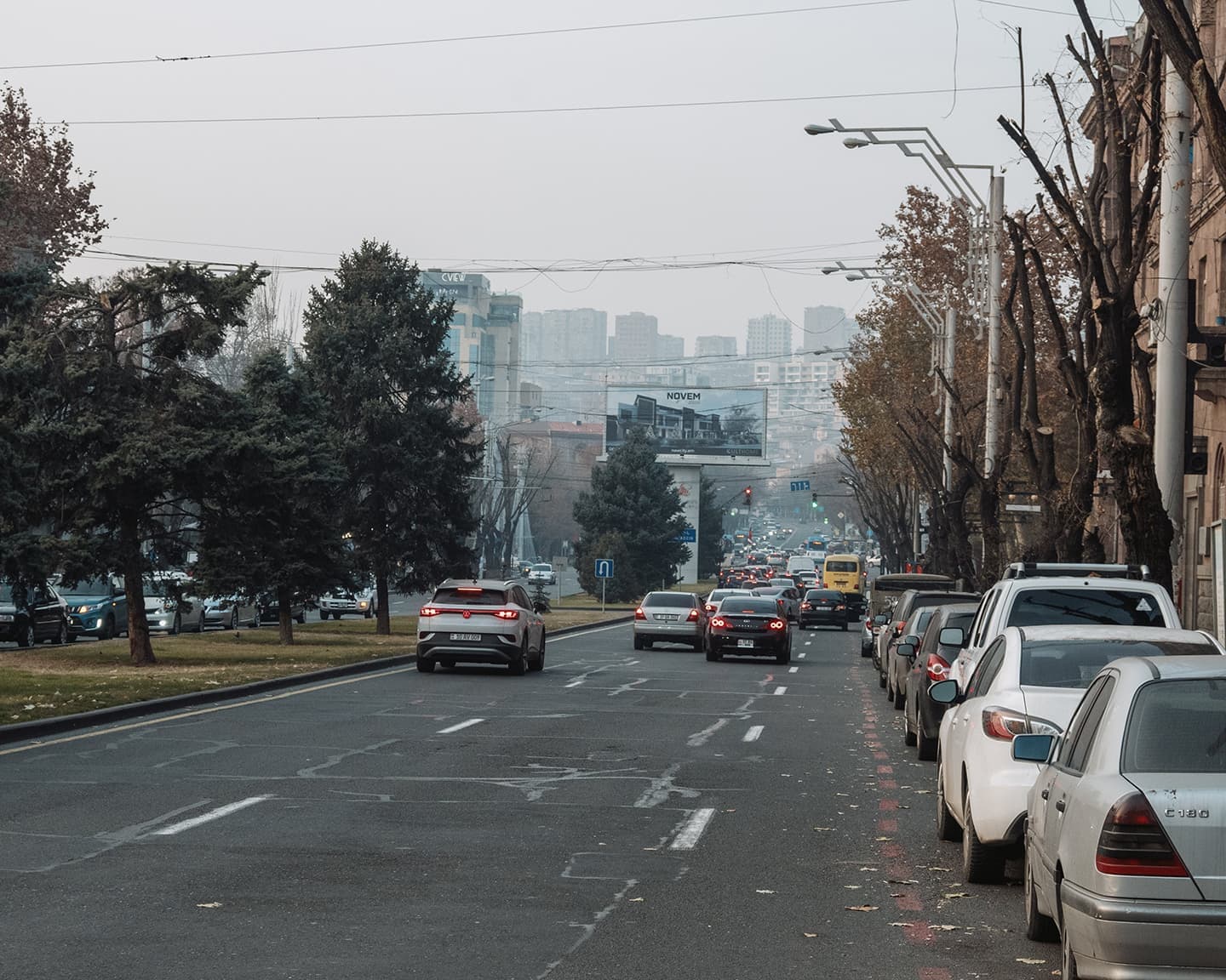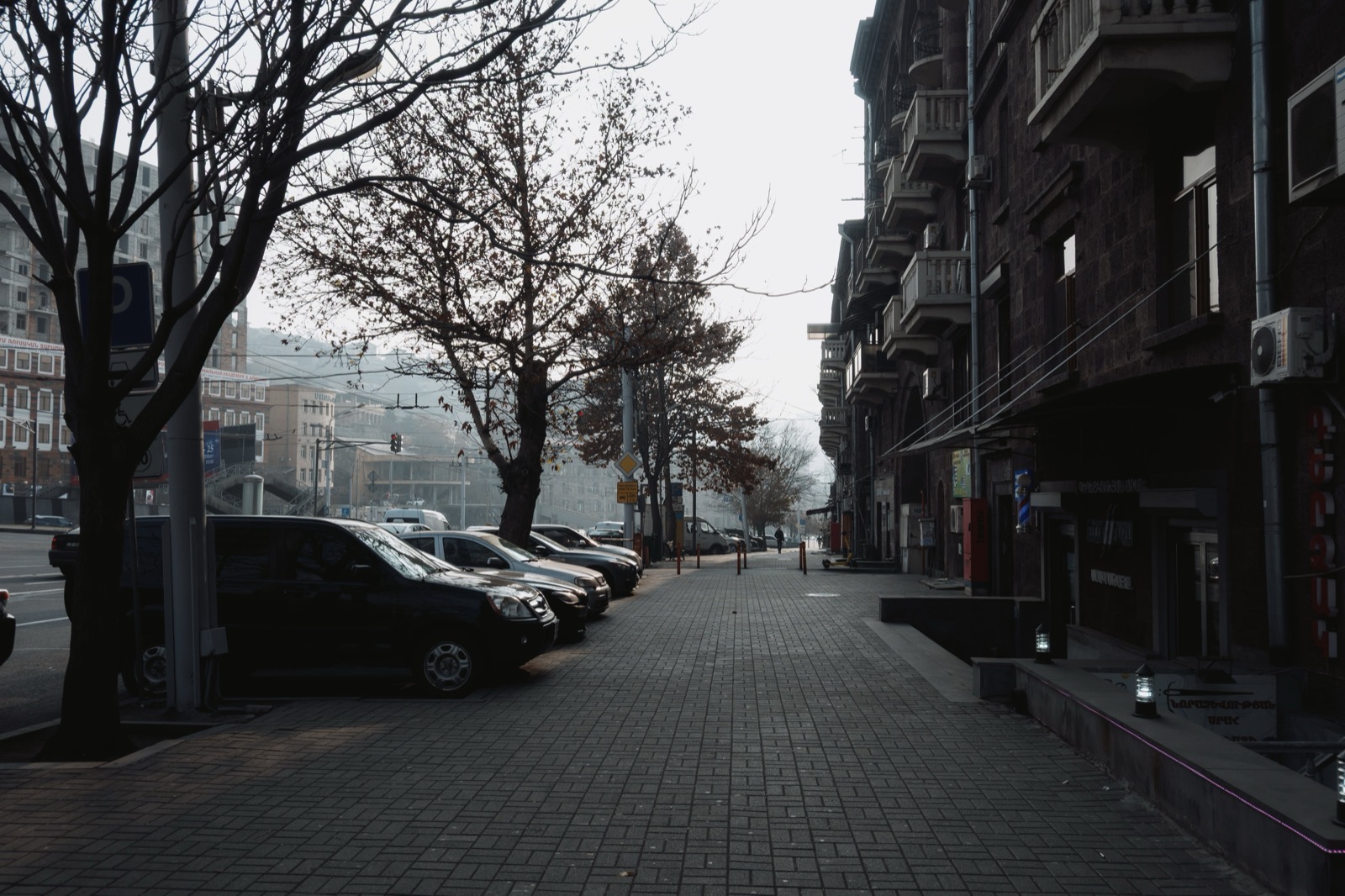 Когда вышли на улицу, солнце уже клонилось к горизонту, и перед глазами предстал типичный осенне-зимний ереванский закат. Это когда вроде бы ясно, но из-за тяжёлой дымки солнечный свет приглушён, и до стен и асфальта добираются лишь мягкие рыжеватые отблески. Получается странный эффект: будто одновременно и солнечно, и пасмурно, и два этих вайба сливаются в одно.