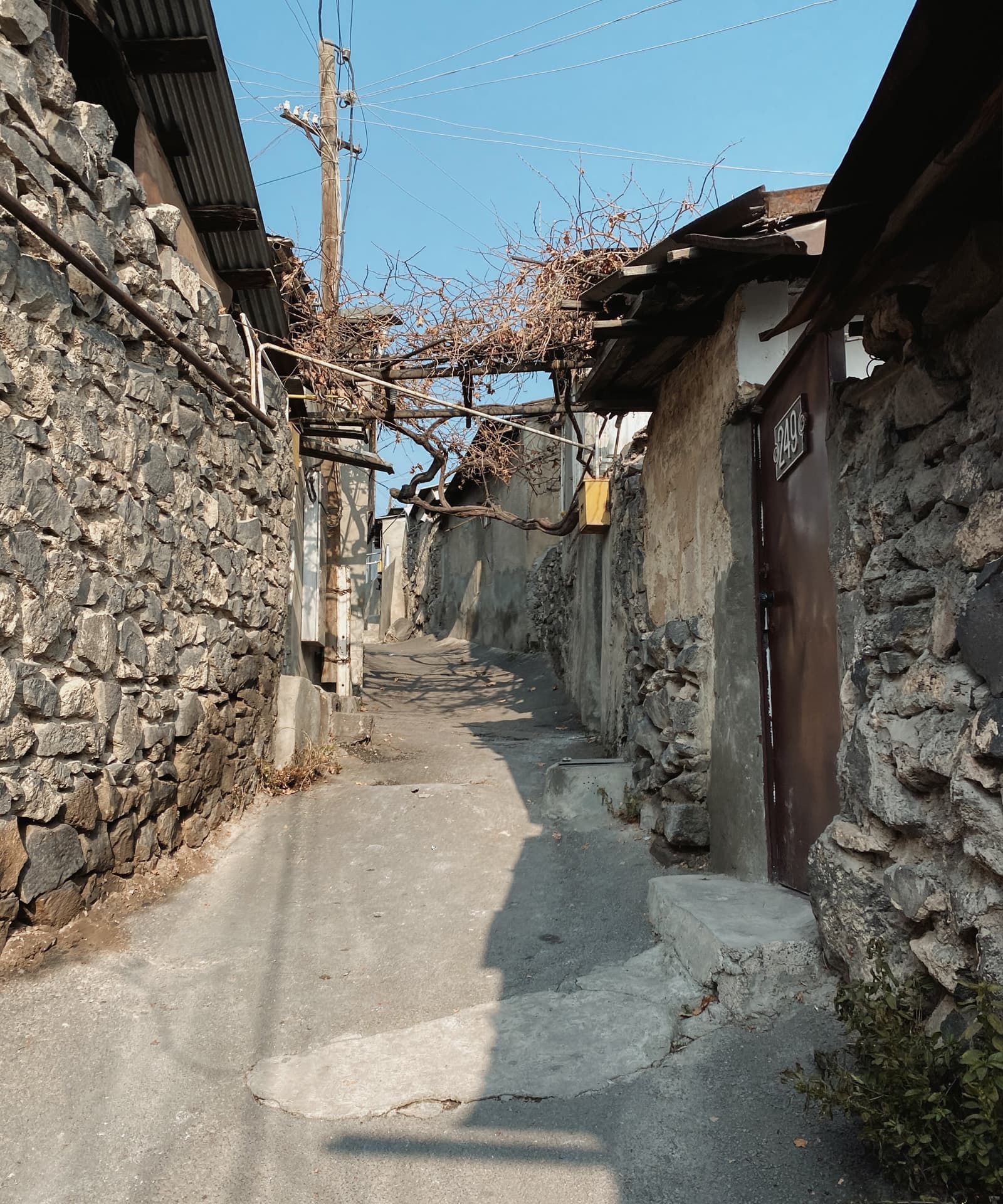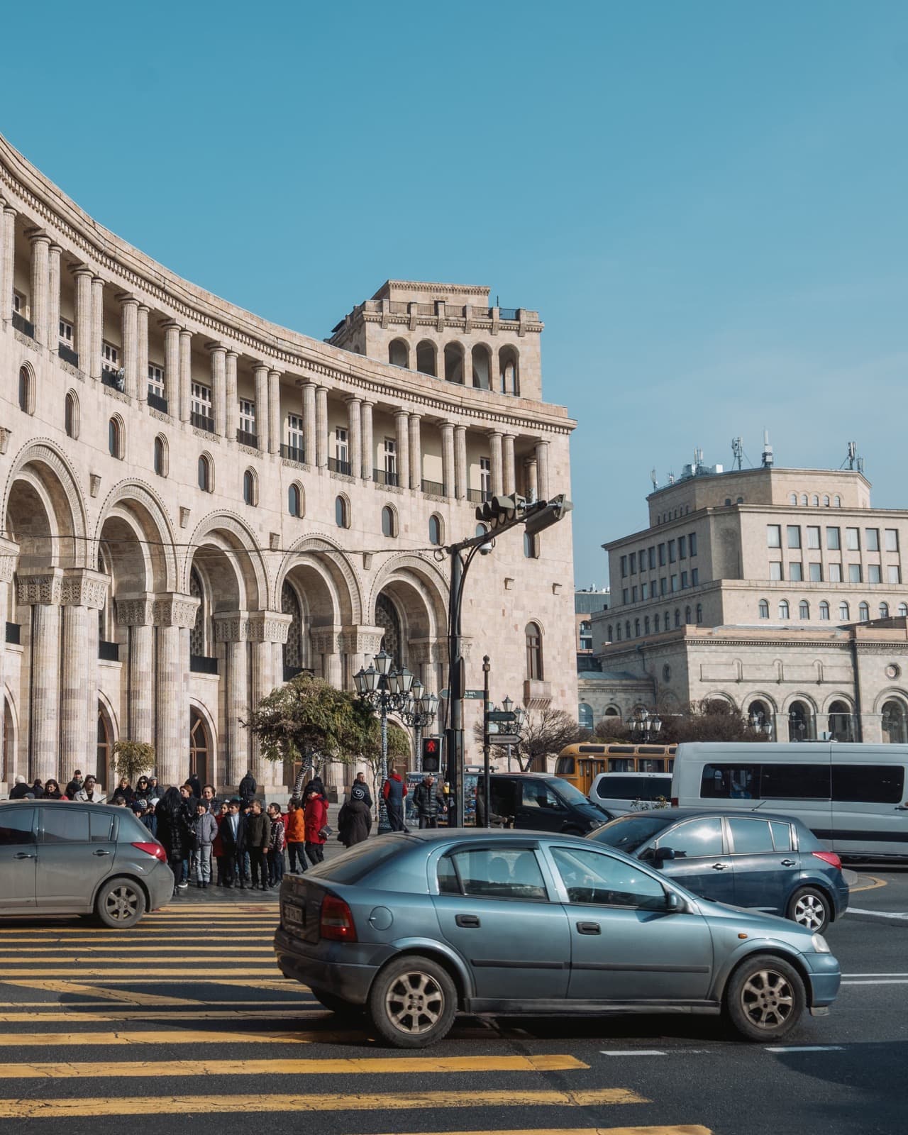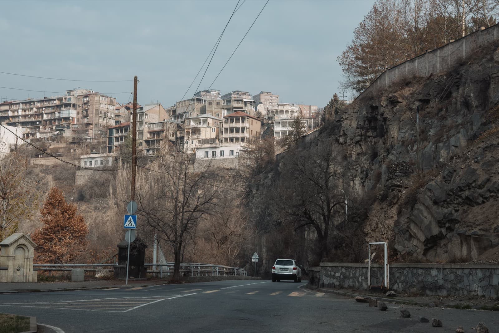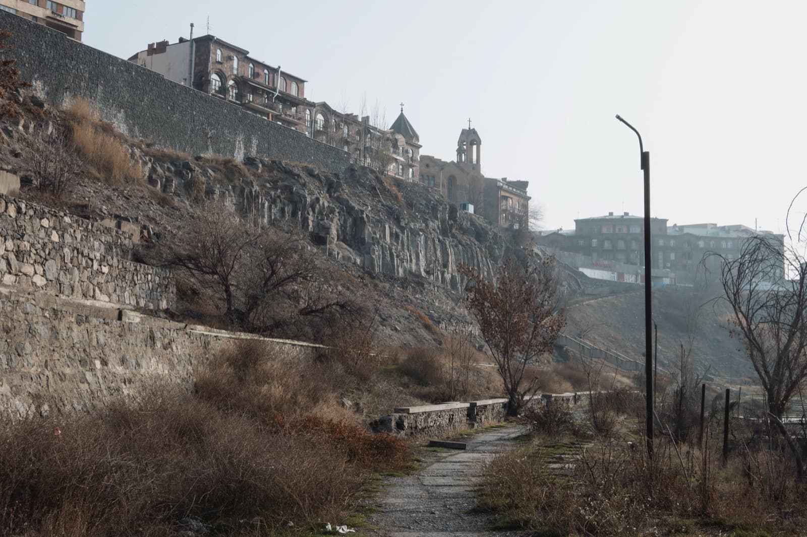 Когда вышли на улицу, солнце уже клонилось к горизонту, и перед глазами предстал типичный осенне-зимний ереванский закат. Это когда вроде бы ясно, но из-за тяжёлой дымки солнечный свет приглушён, и до стен и асфальта добираются лишь мягкие рыжеватые отблески. Получается странный эффект: будто одновременно и солнечно, и пасмурно, и два этих вайба сливаются в одно.