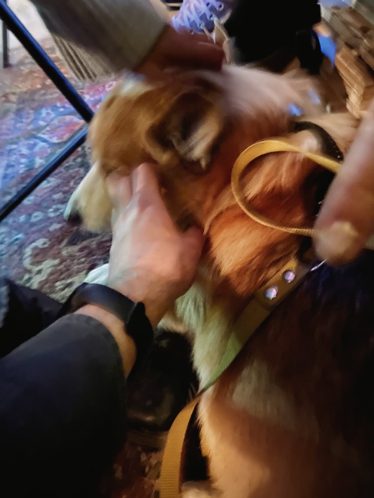 А ещё запомнилась чудесная собака, которую, с любезного разрешения хозяйки, мы всей компанией наперебой затискали.