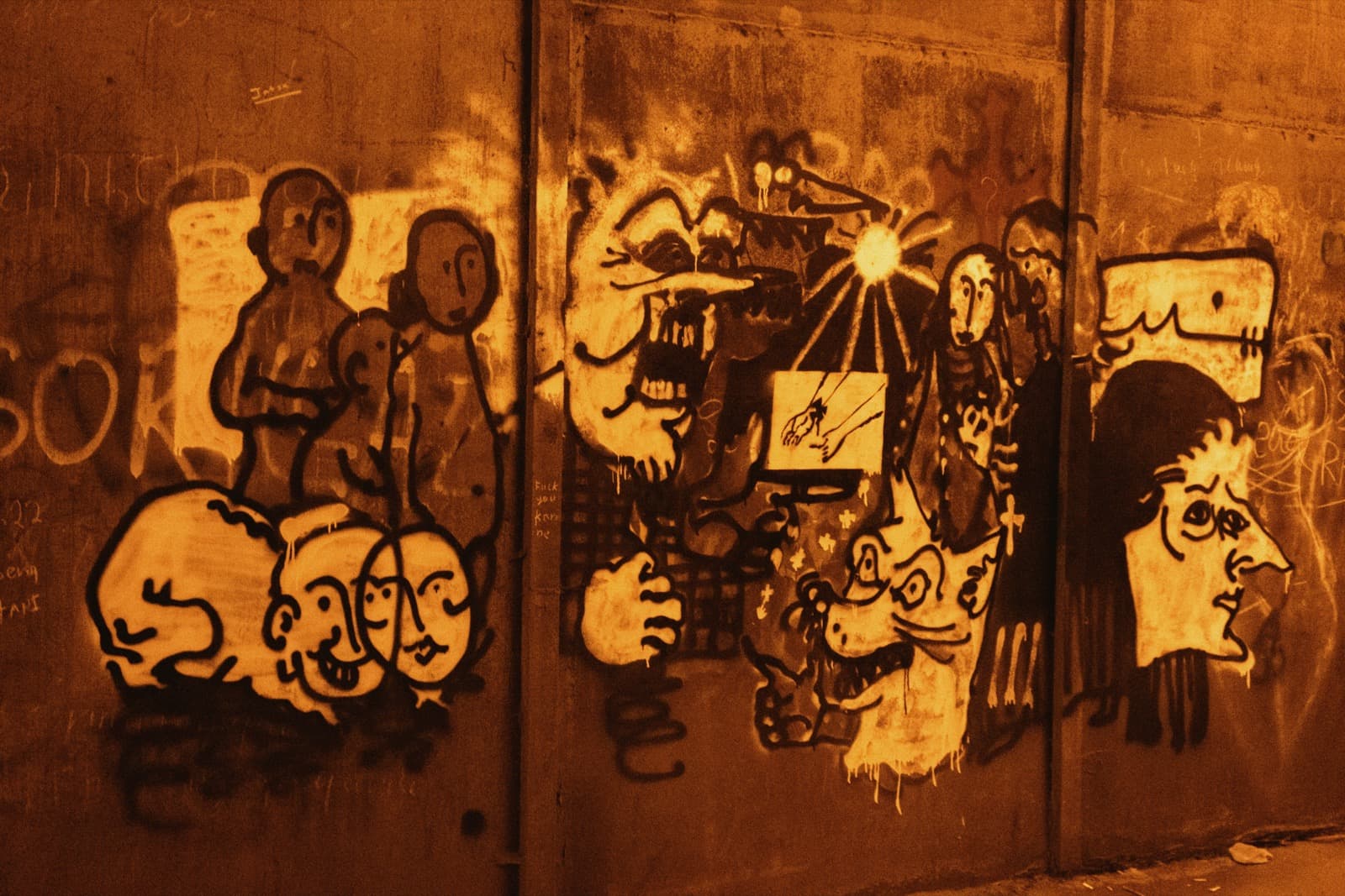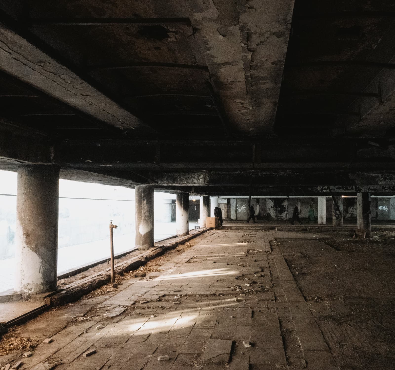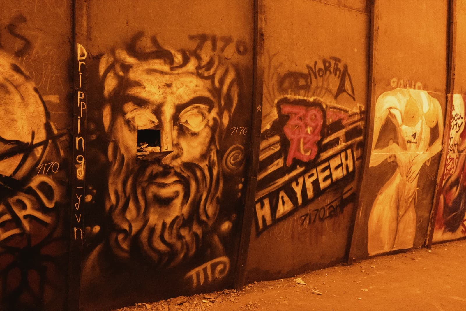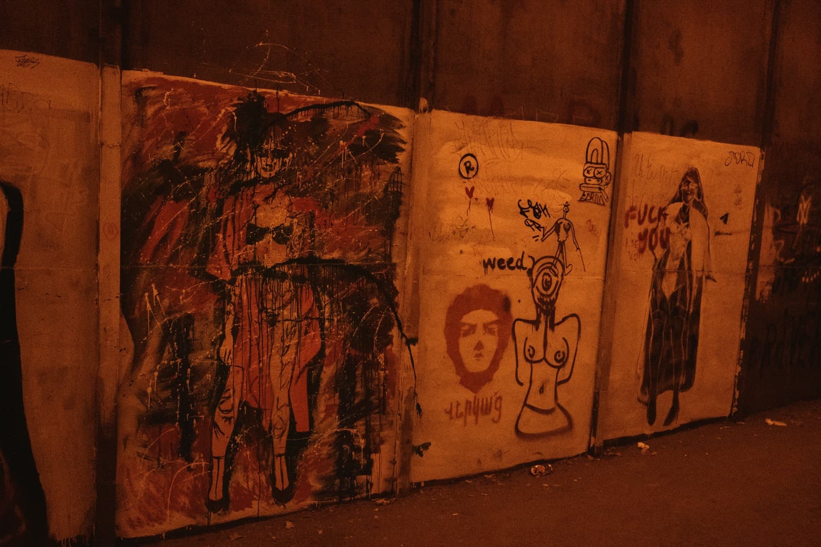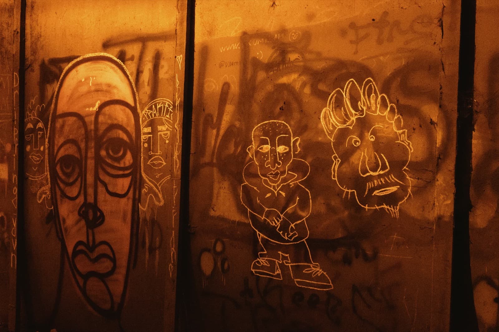 А ещё со временем тоннель превратился в своеобразную галерею стрит-арта: его стены от начала и до конца покрыты надписями, рисунками, граффити. Здесь есть всё — от банальных автографов маркером до вполне изобретательных картинок. Политические лозунги, похабщина, фантазии… Кто-то считает это вандализмом. А мне нравится: без этого графического безумия пространство выглядело бы куда скучнее. И тот надрыв, что читается во многих рисунках, здорово перекликается с состоянием самого тоннеля: он уже не строит планов, а словно смиренно ждёт, когда своды треснут и горная порода перекроет артерию.