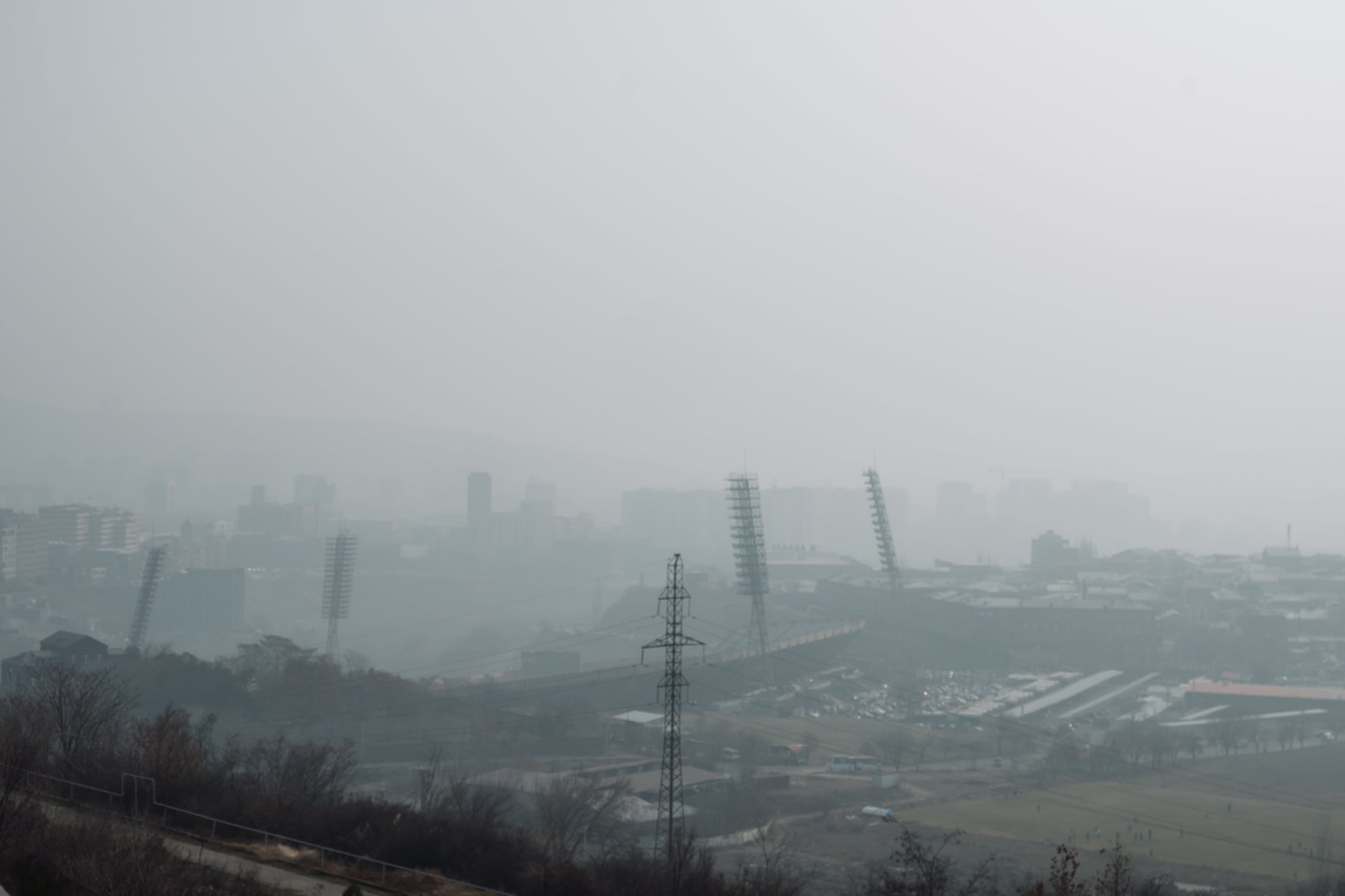 Визуально такие вечера мне нравятся: интересный свет. Но умом понимаю, что эта дымка — вовсе не туман, а тяжёлое загрязнение. В такие моменты датчики качества воздуха на карте загораются тёмно-красным, а порой и фиолетовым цветом — что означает: дышать таким воздухом очень вредно.