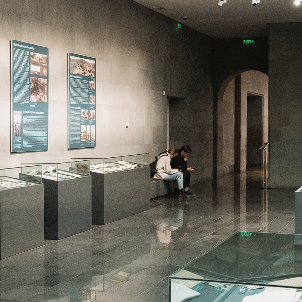 После осмотра наземной части, мы пошли в музей геноцида. Эта часть мемориала появилась относительно недавно — музей был достроен в 1995 году.
