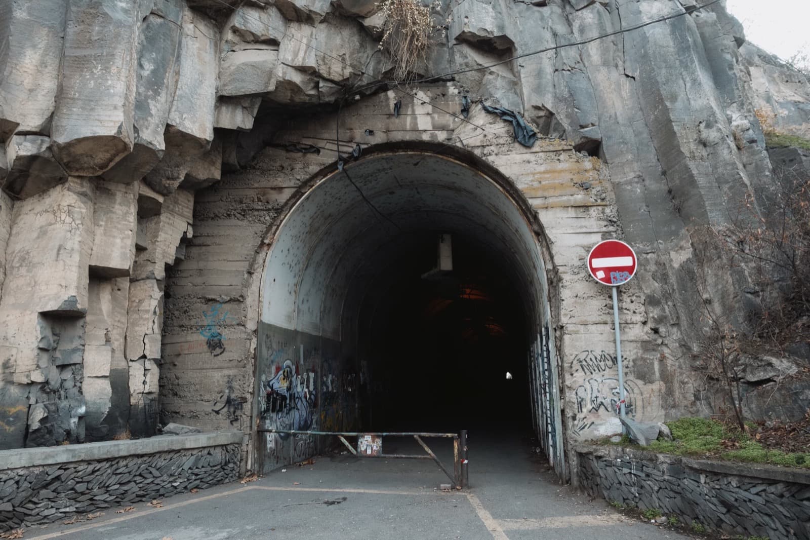 Тоннелей здесь два. Вход в правый закрыт: говорят, там случился обвал, и пройти по нему в принципе невозможно. Поэтому мы отправились в левую ветку — единственную открытую для прохода.