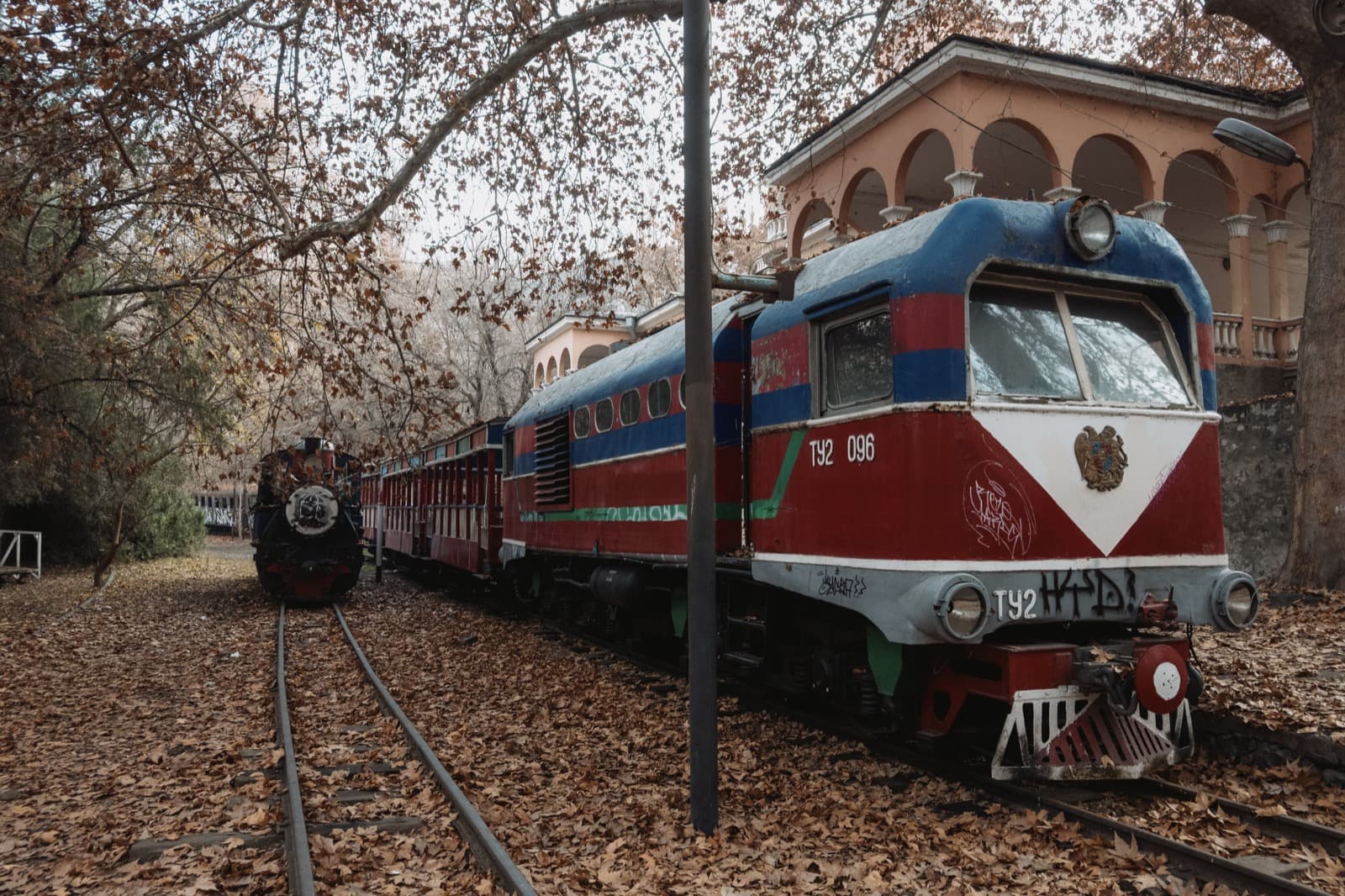 Вокзал с припаркованными у него локомотивами — главная, но не единственная локация ДКЖД. Осмотрев их мы пошли дальше по путям, которые ещё больше километра тянутся по левому берегу реки Раздан.