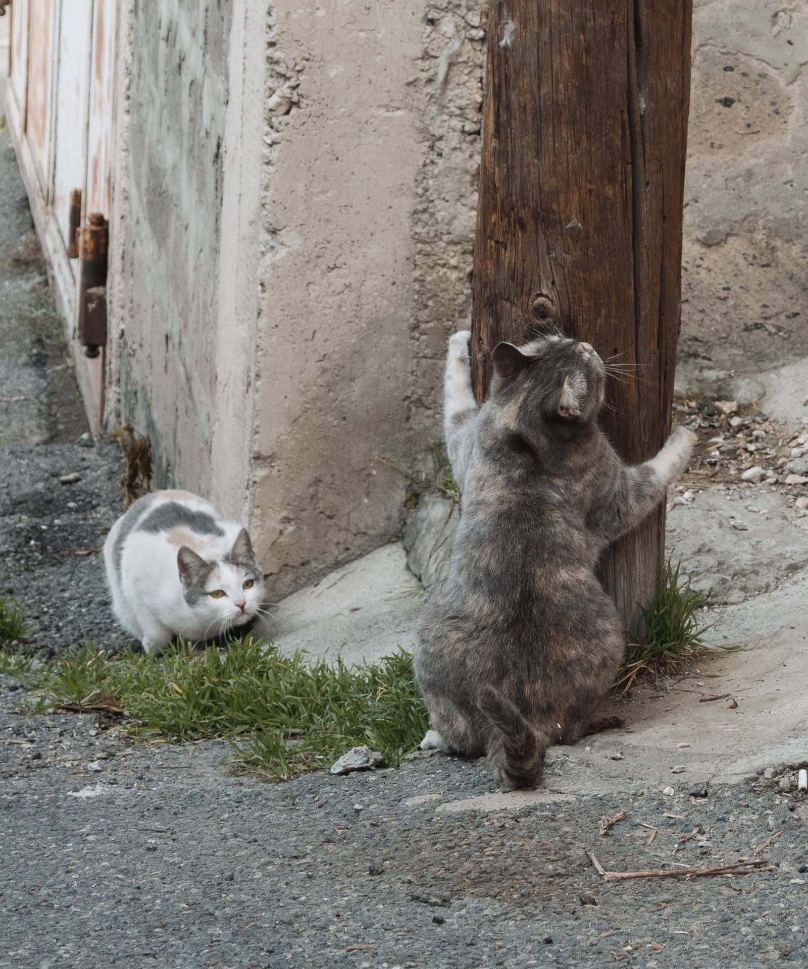 Обнаружил за домом интересный проход и пару пугливых котиков.