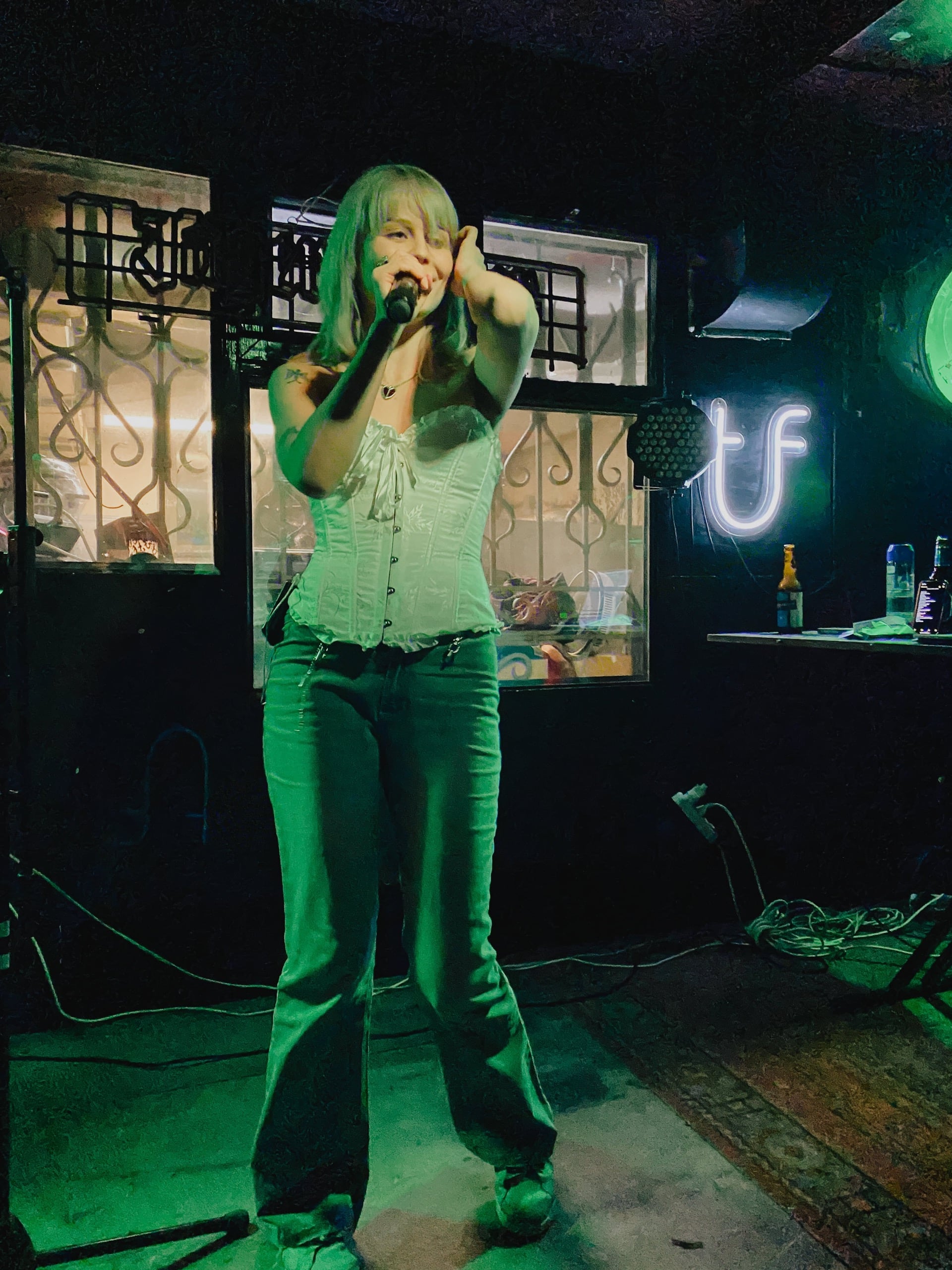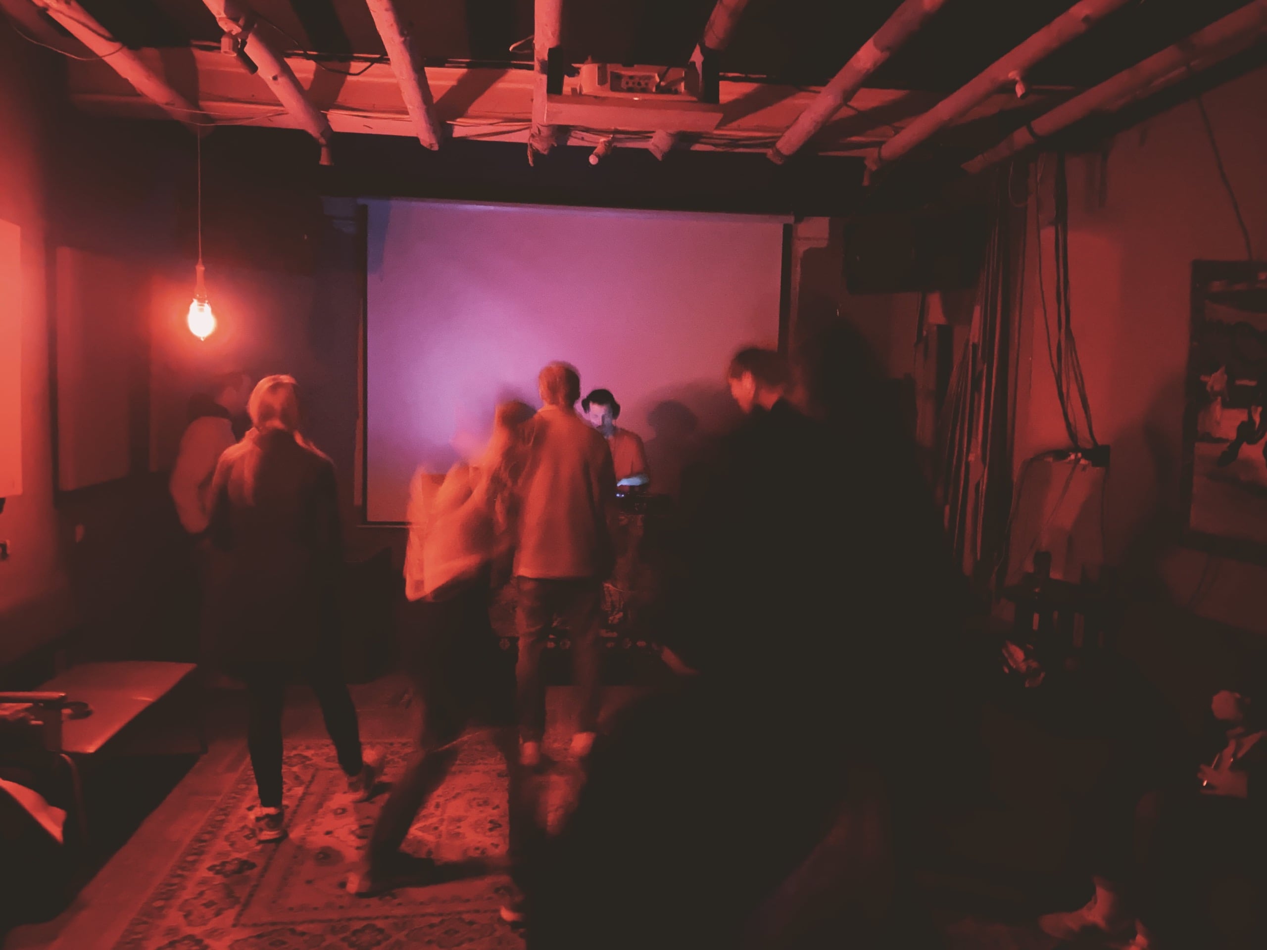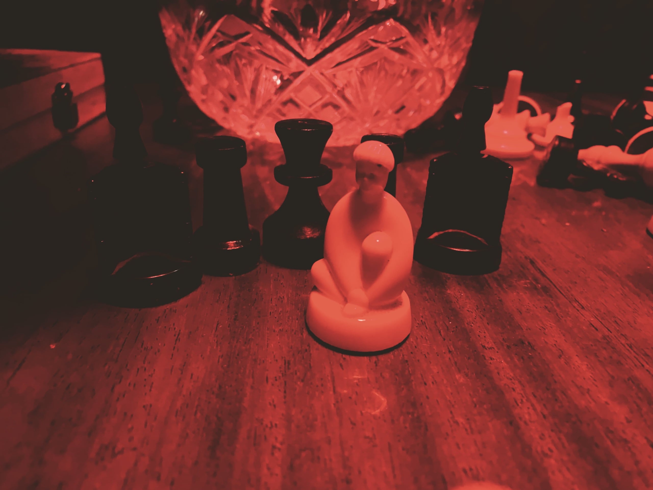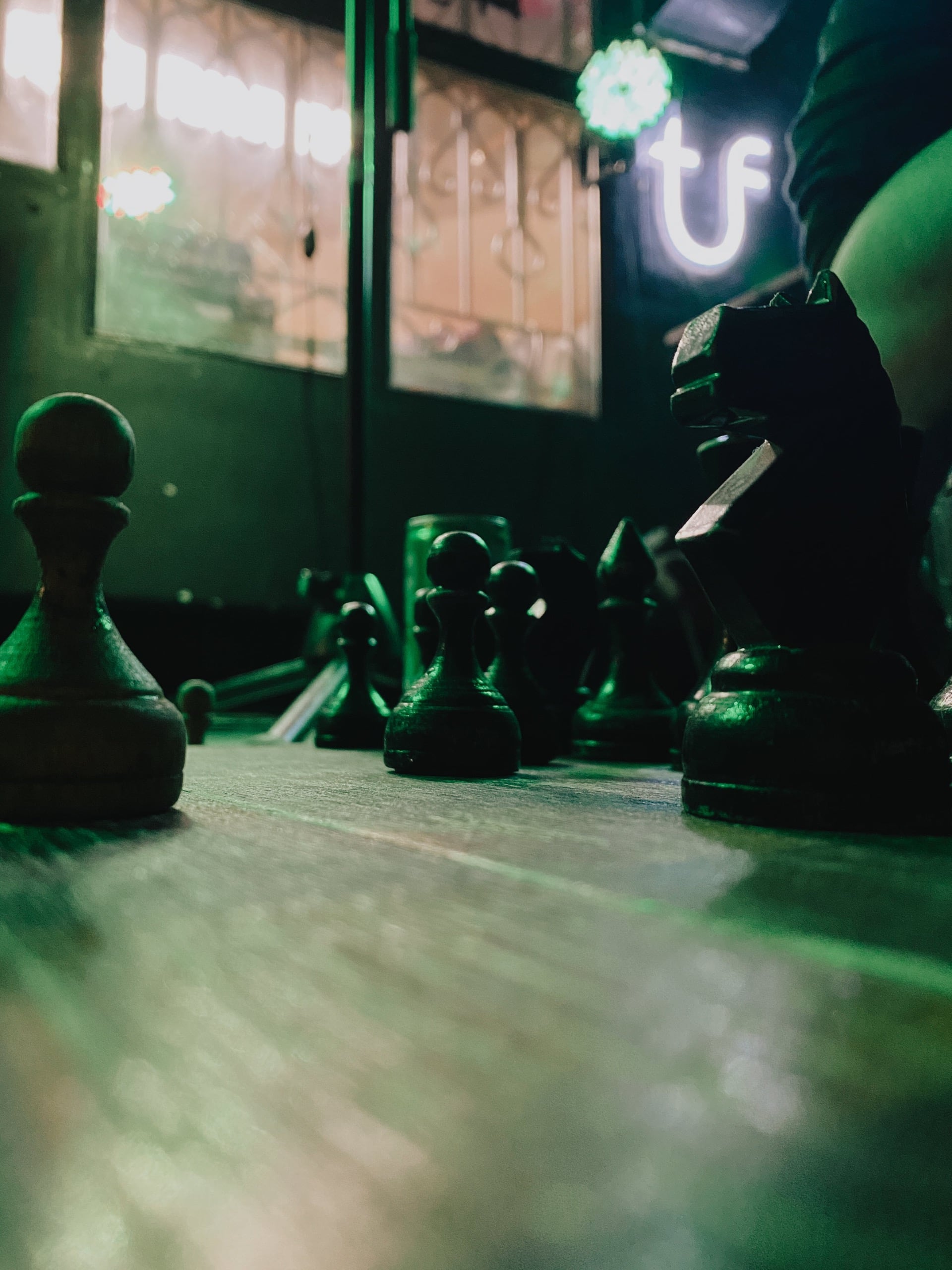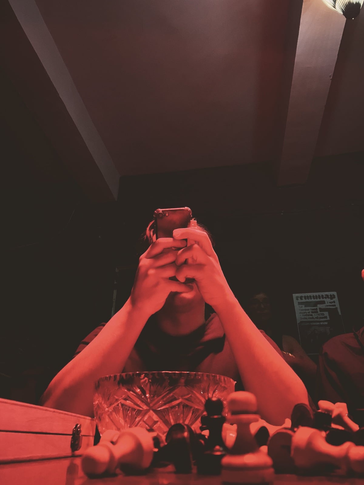А потом стемнело и началась вечерняя программа. Первым делом пошли выпить пива и поужинать в «Даргет», оттуда переместились в «Туф», куда пришли сильно заранее, а потому кто-то просто чилил в ожидании мероприятия, кто-то играл в шахматы на пока ещё пустой сцене.
