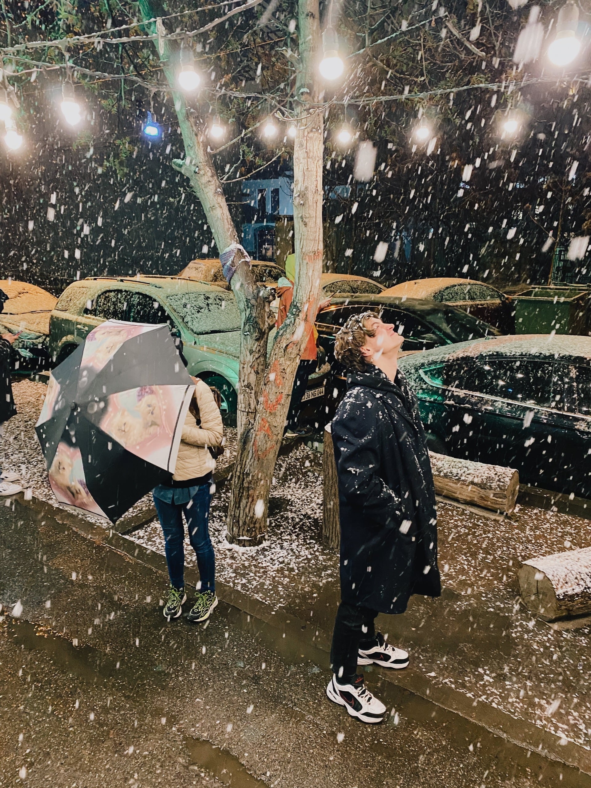 В один момент я вышел на улицу и там внезапно повалил снег! Крупными жирными хлопьями. Это было так неожиданно и волшебно, и так контрастировало с чудесной весенней погодой утром.