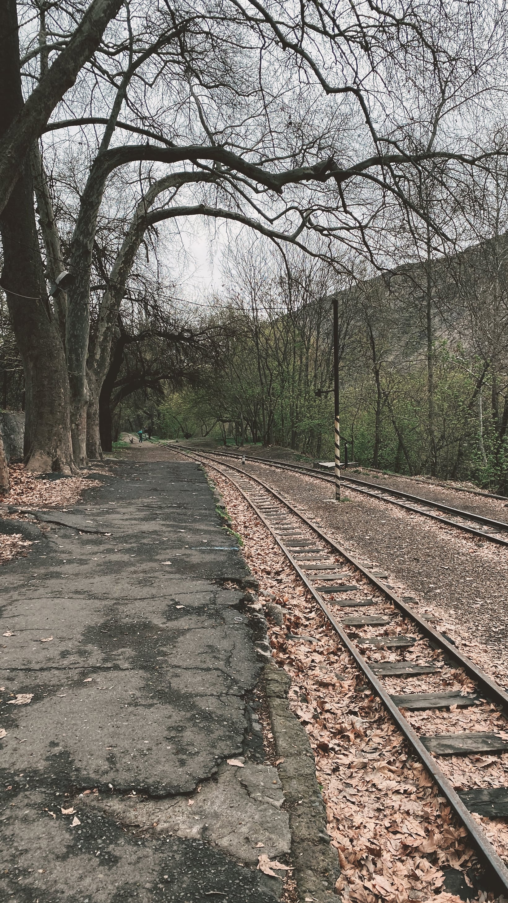 Утром следующего дня решили сходить ещё раз к детской железной дороге, уж больно она понравилась в предыдущий раз. Да и хотелось посмотреть на место когда там стало хотя бы чуть-чуть зелено.