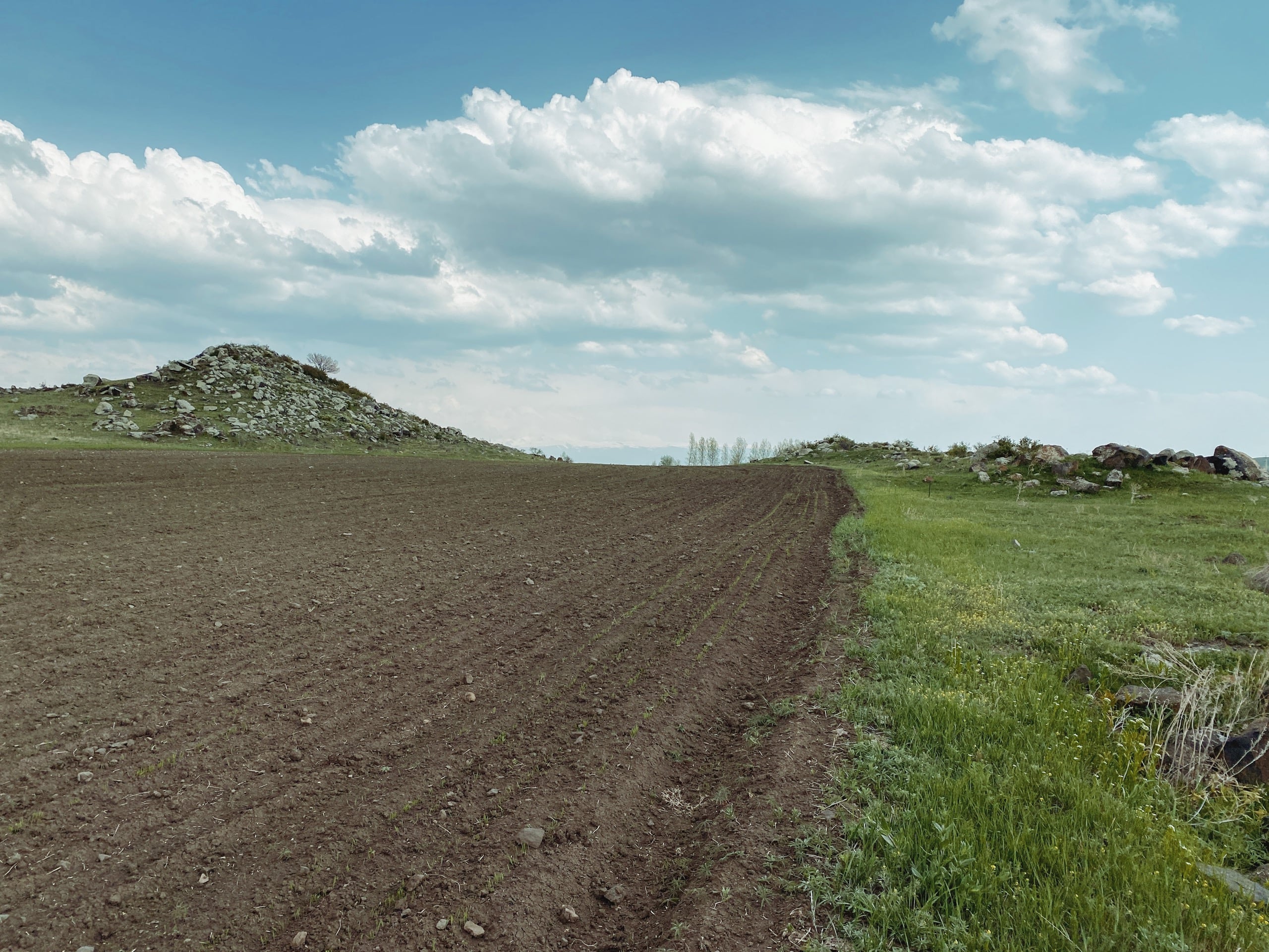 Посреди абсолютно диких пастбищно-луговых ландшафтов внезапно встретилась пашня.
