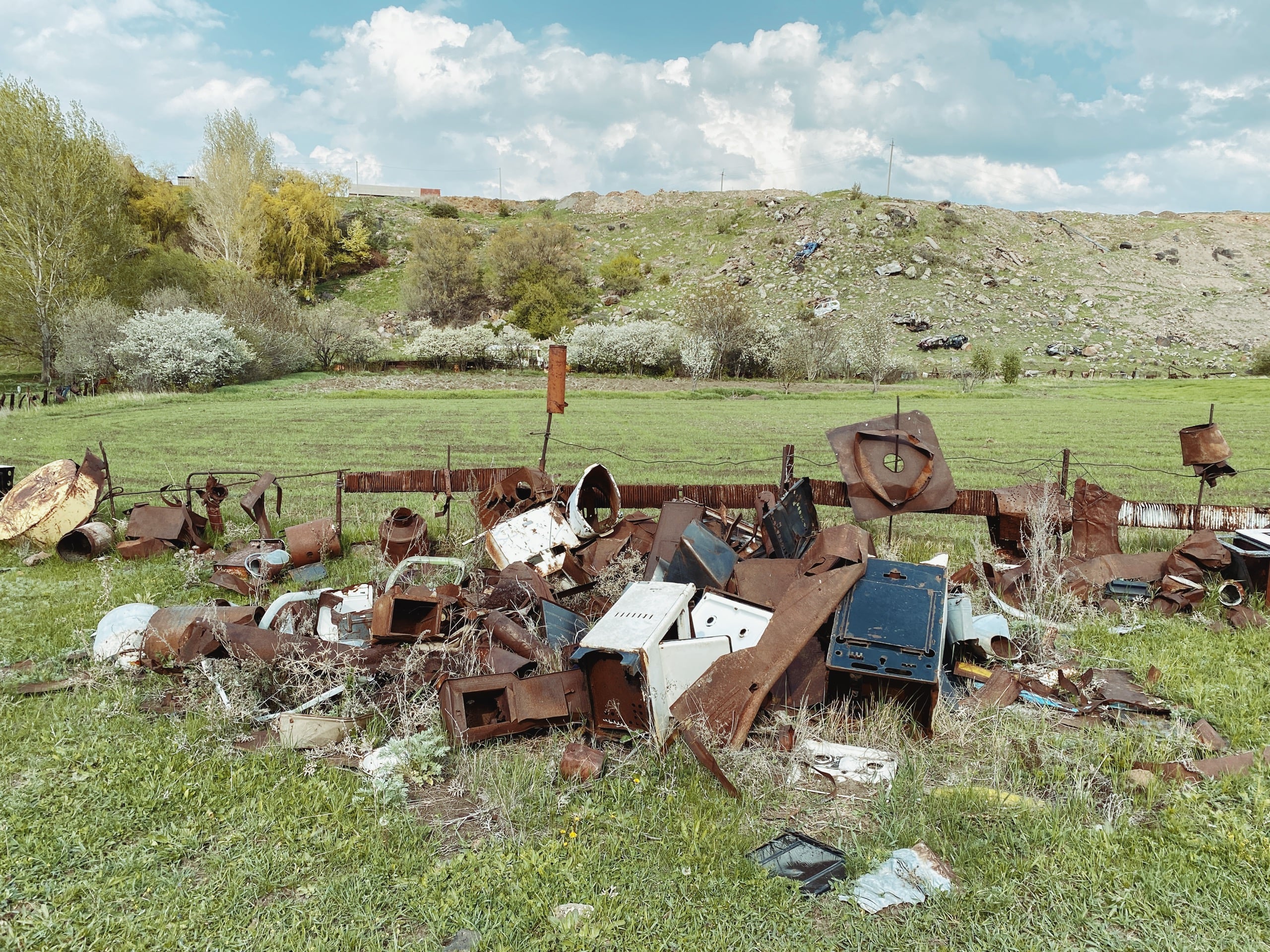 Она привела нас к очередной пашне, окружённой металлоломом.