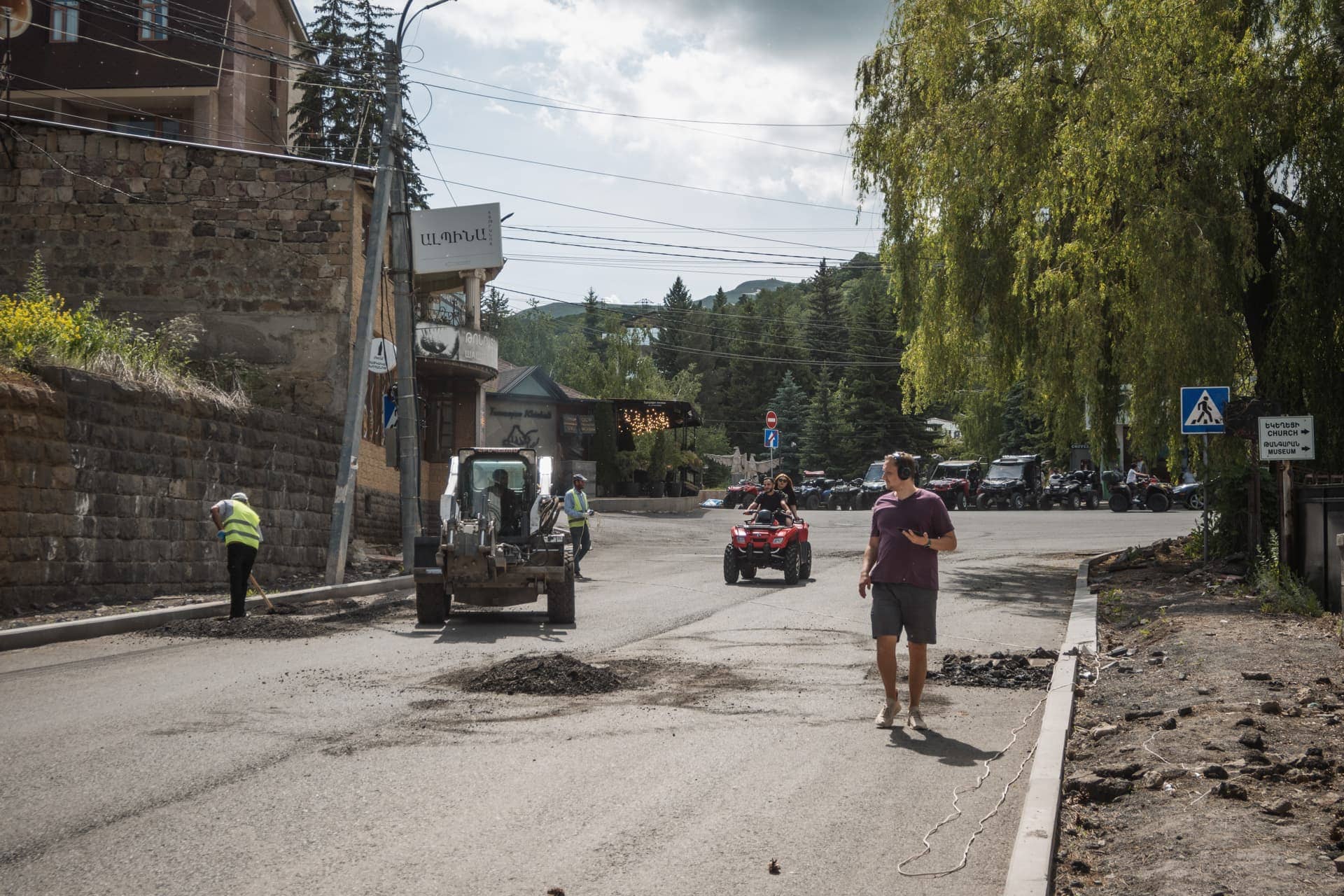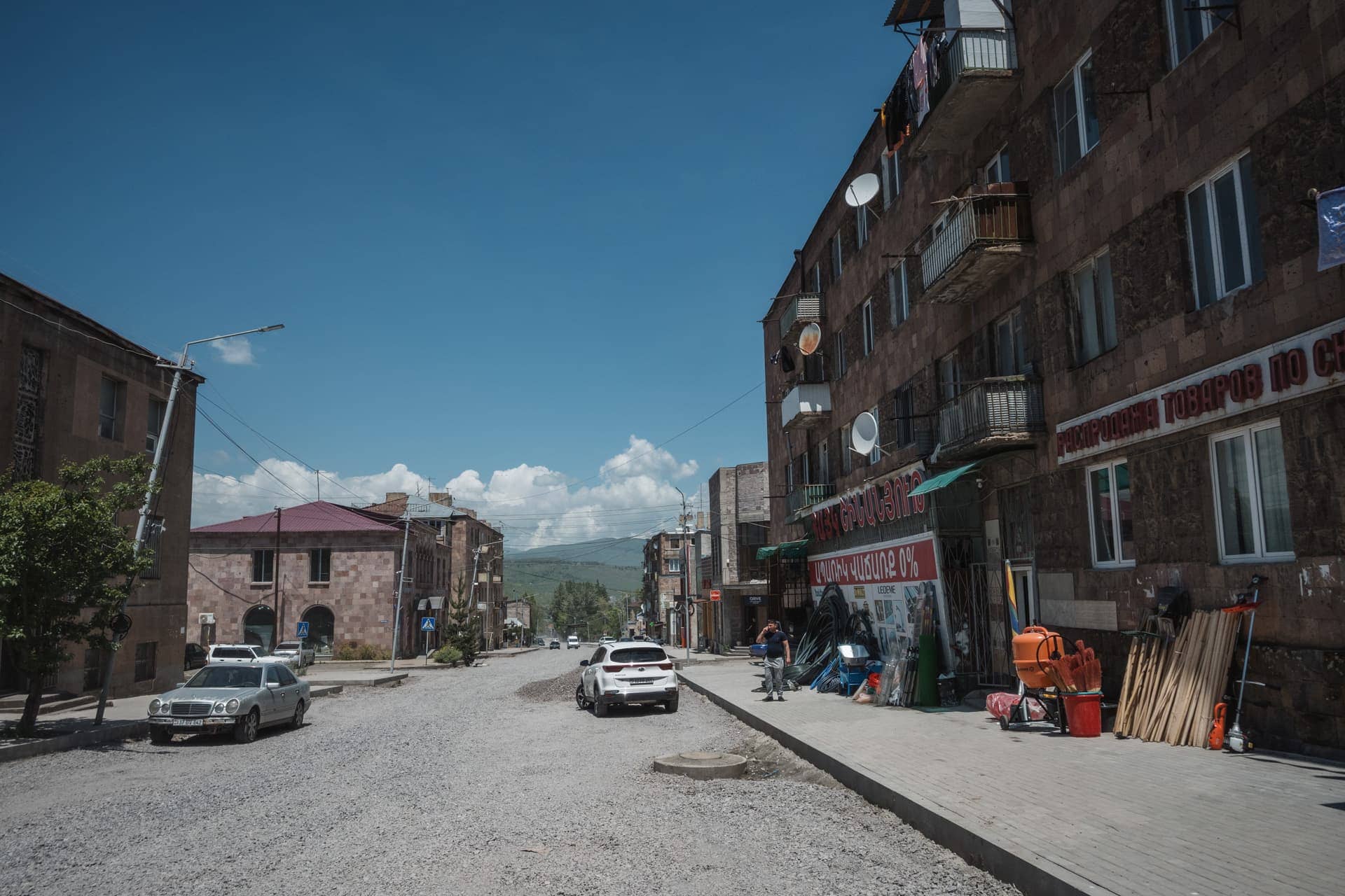 Многие дороги имеют грунтовое покрытие, но центральная улица — шоссе Ереванян — готовится покрыться новеньким асфальтом.