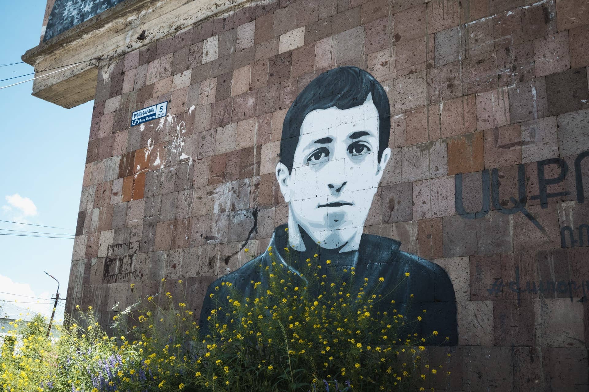 В Армении распространена практика увековечивать лица погибших ребят на стенах домов, в которых они жили.