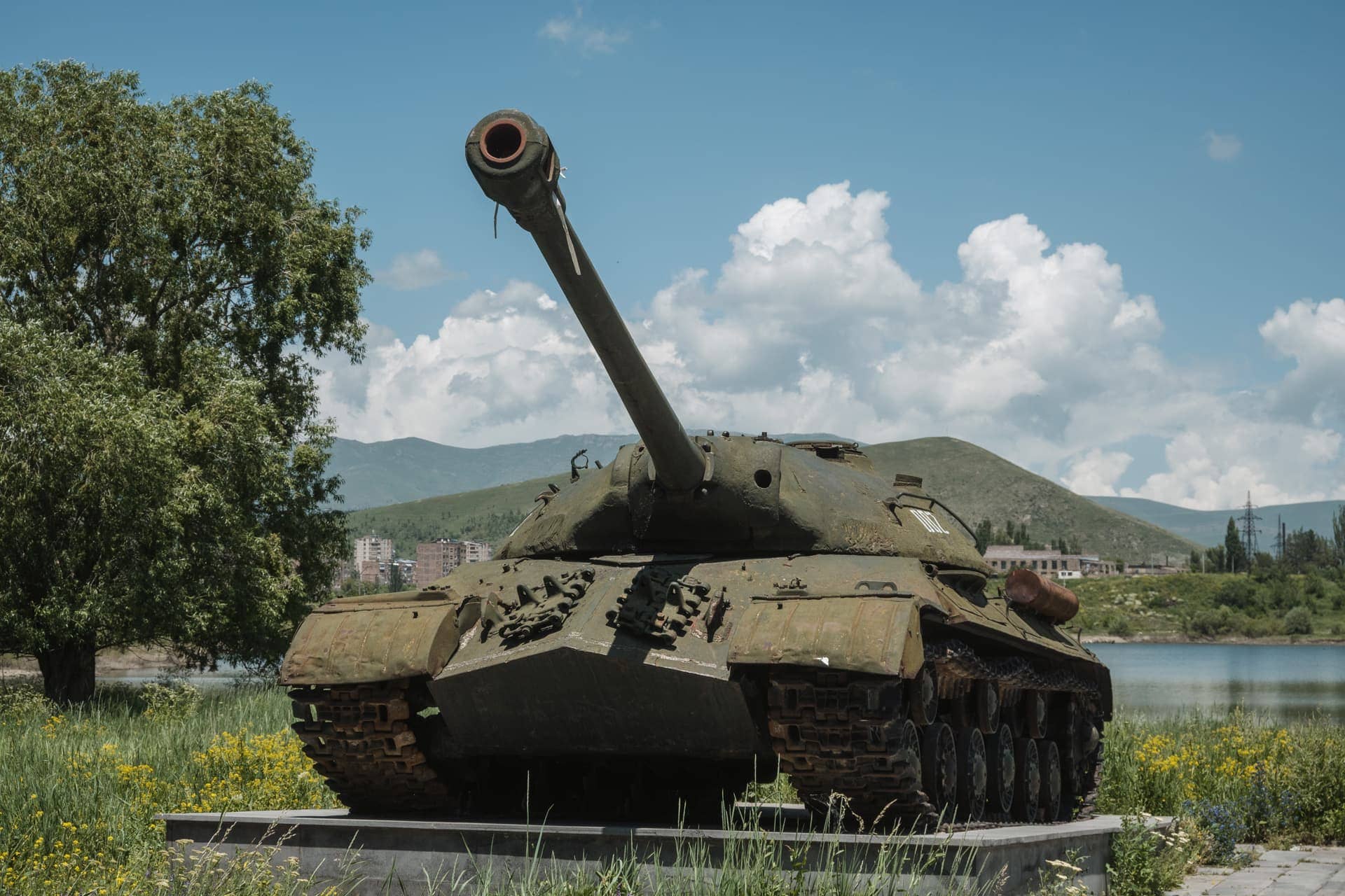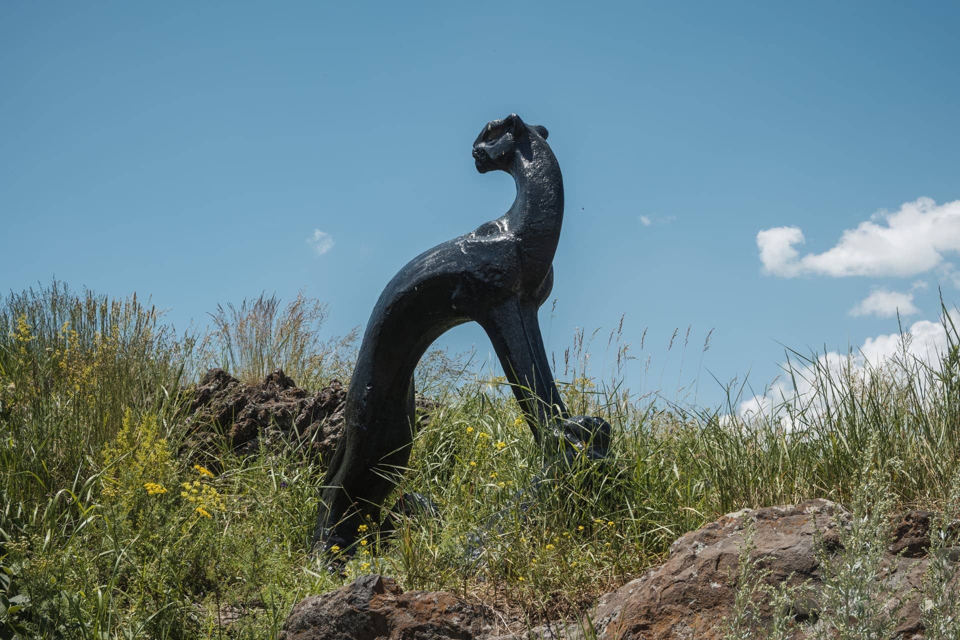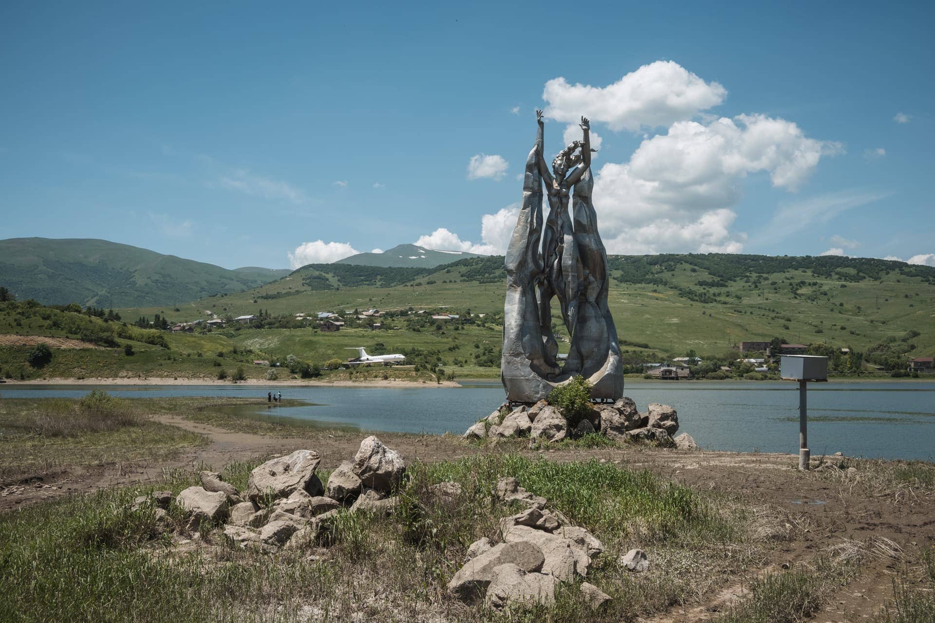 На берегу второго Разданского озера нашёл прекрасную скульптуру выходящей из воды женщины. Подозреваю, что по полной воде она стоит на острове и выглядит ещё эффектнее. Также в кадре можно найти рыбаков на отмели и пассажирский лайнер Ту-134. В сети часто всплывают фотографии самолёта, стоящего у воды. Так вот, он здесь, в Раздане.