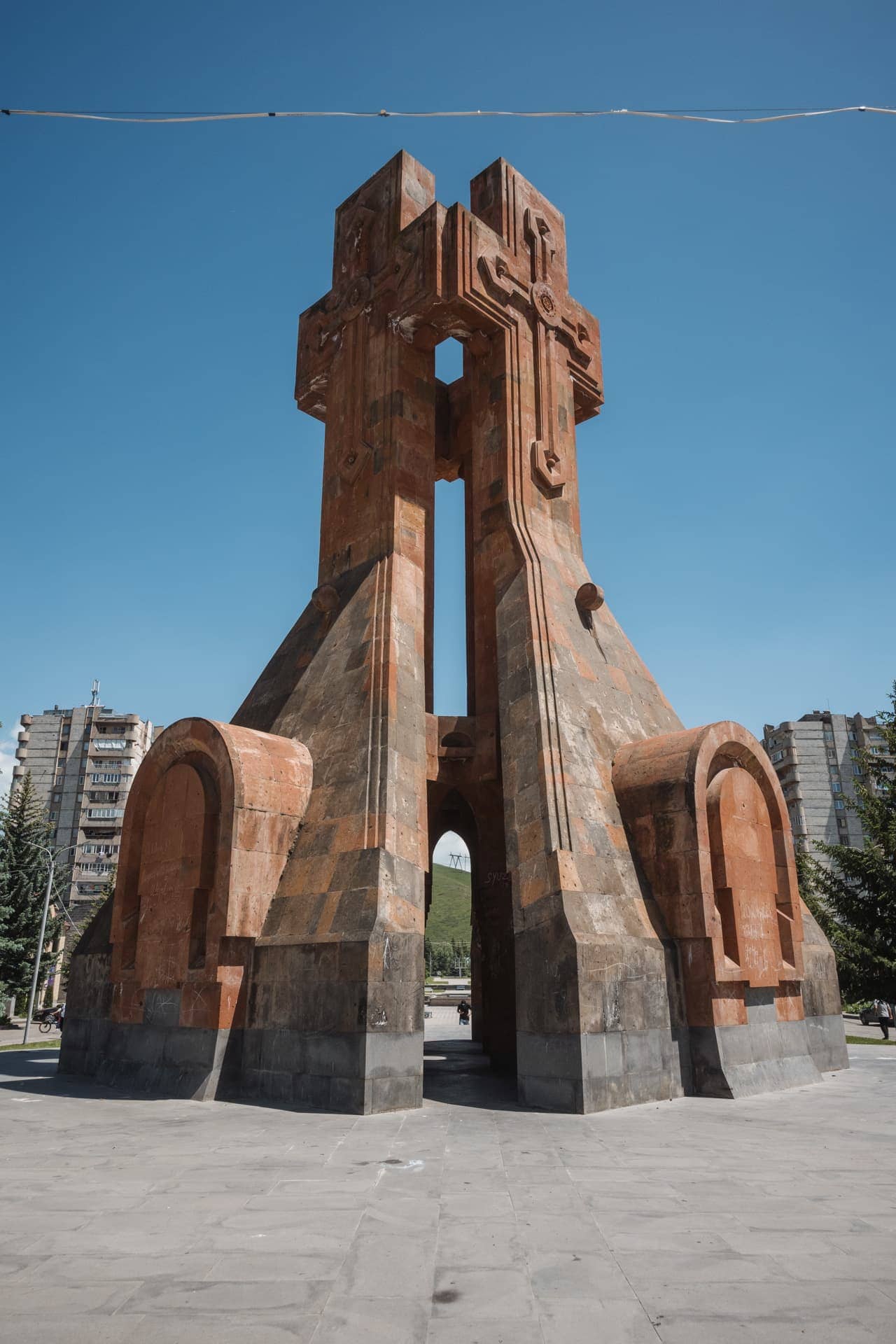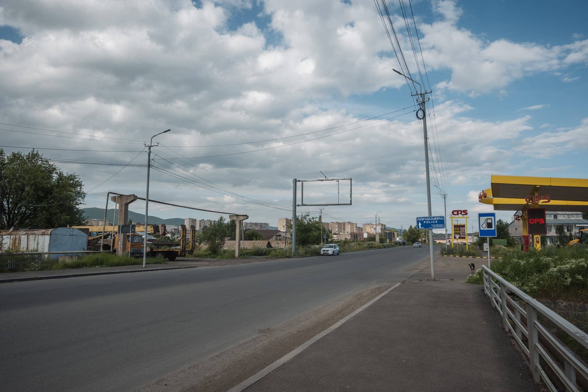 Она кончается за перешейком, где начинается длинный проспект Зоравара Андраника. Идти пешком по нему всё так же неудобно: четырёхполосная автомагистраль, у которой поначалу, не то что тротуара, на обочину намёка нет!