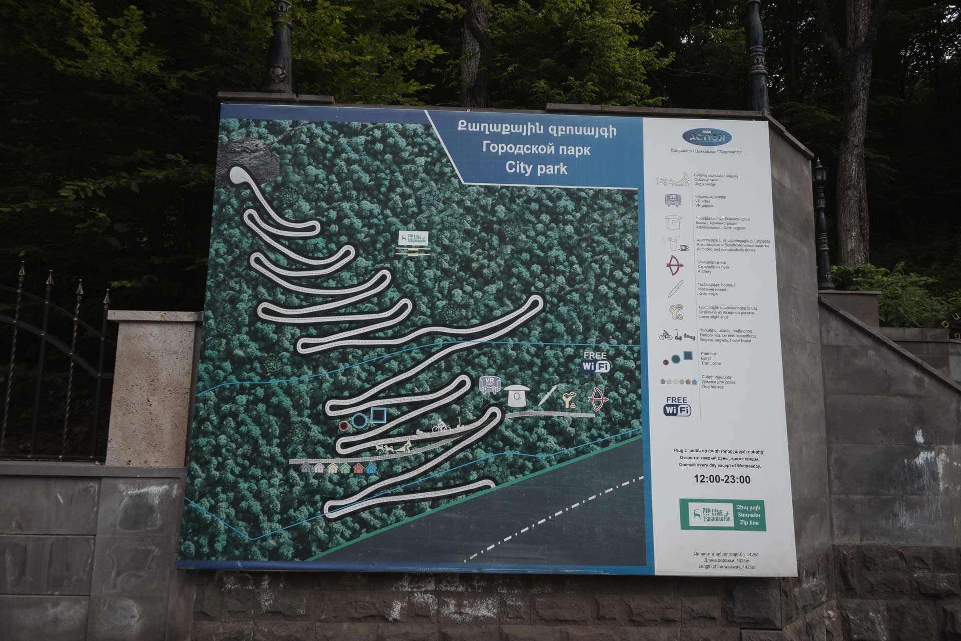 Кварталы Еритасардакана вывели к лесному массиву. Он отмечен на карте как парк Шарля Азнавура.