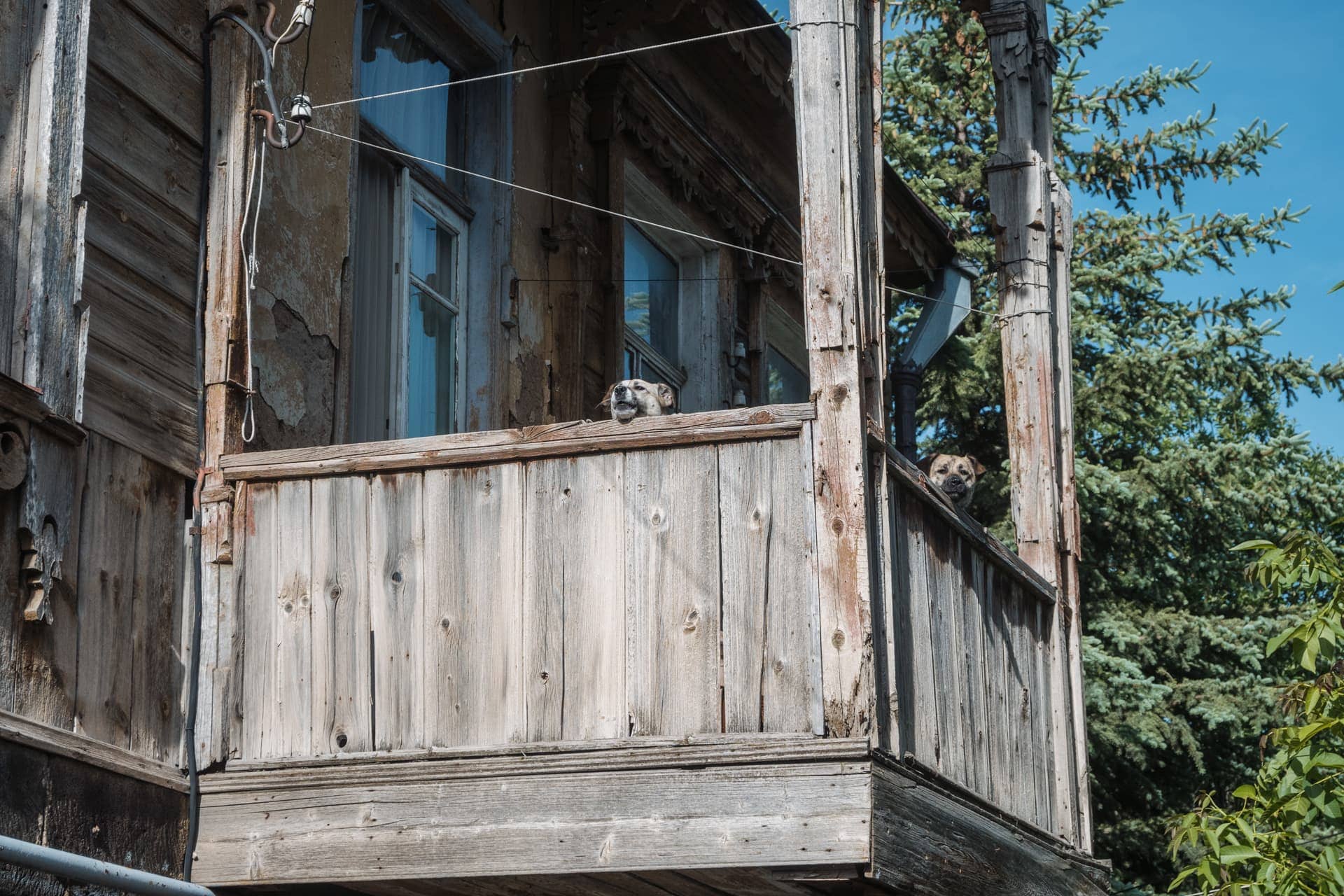 Ещё один деревянный дом с балконом. На нём обитают два стража, которые облаивают всё что движется.