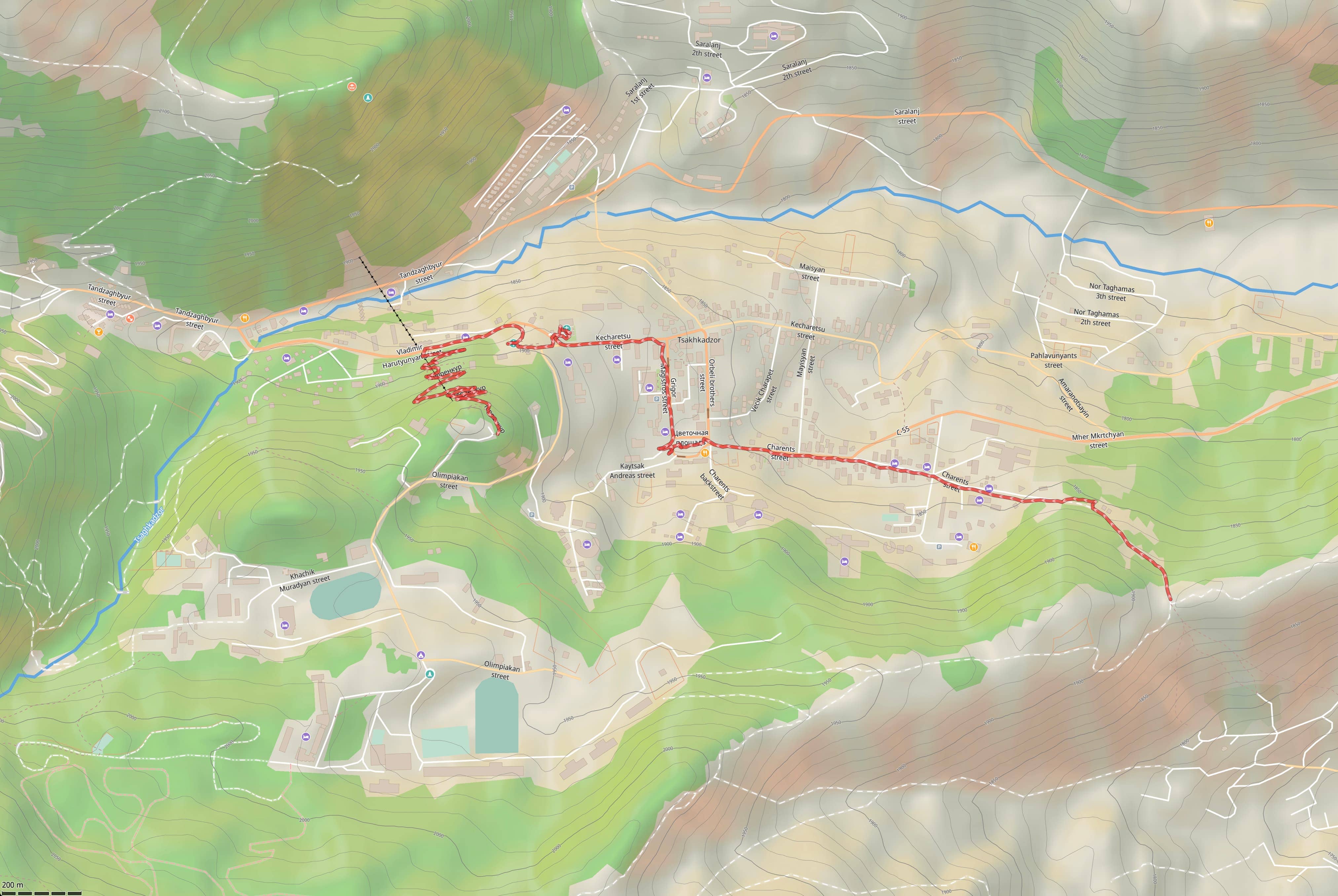 Полный маршрут пешей прогулки по Раздану и Цахкадзору.