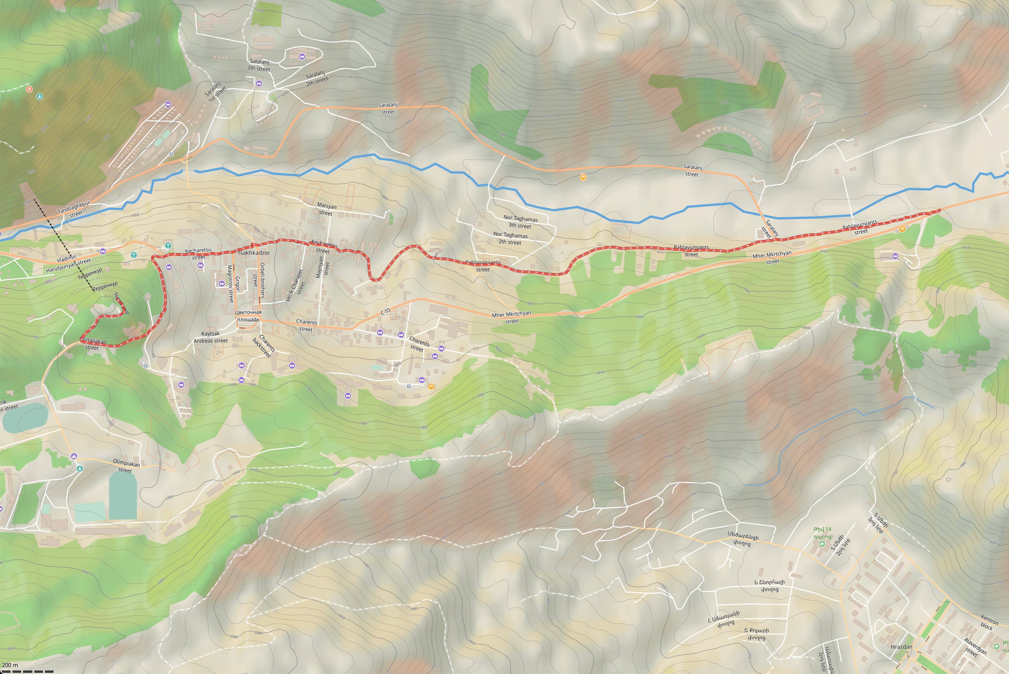 Шёл по магистральной улице Хай Фидаинери. Она пересекает реку Раздан. С моста открывается хороший вид.