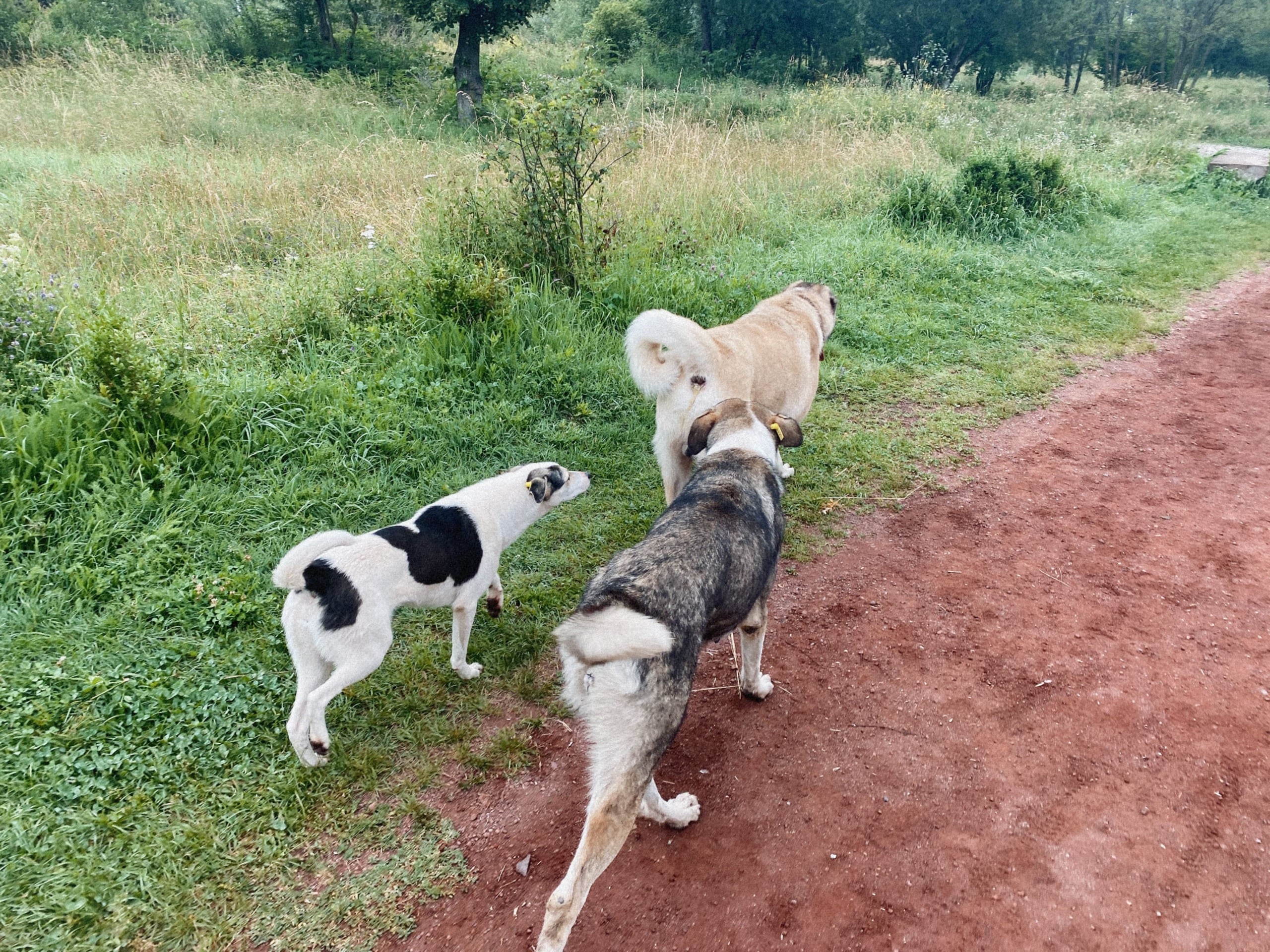 Фото 1. Дворовые собаки увязались, за сопровождающим нас алабаем.