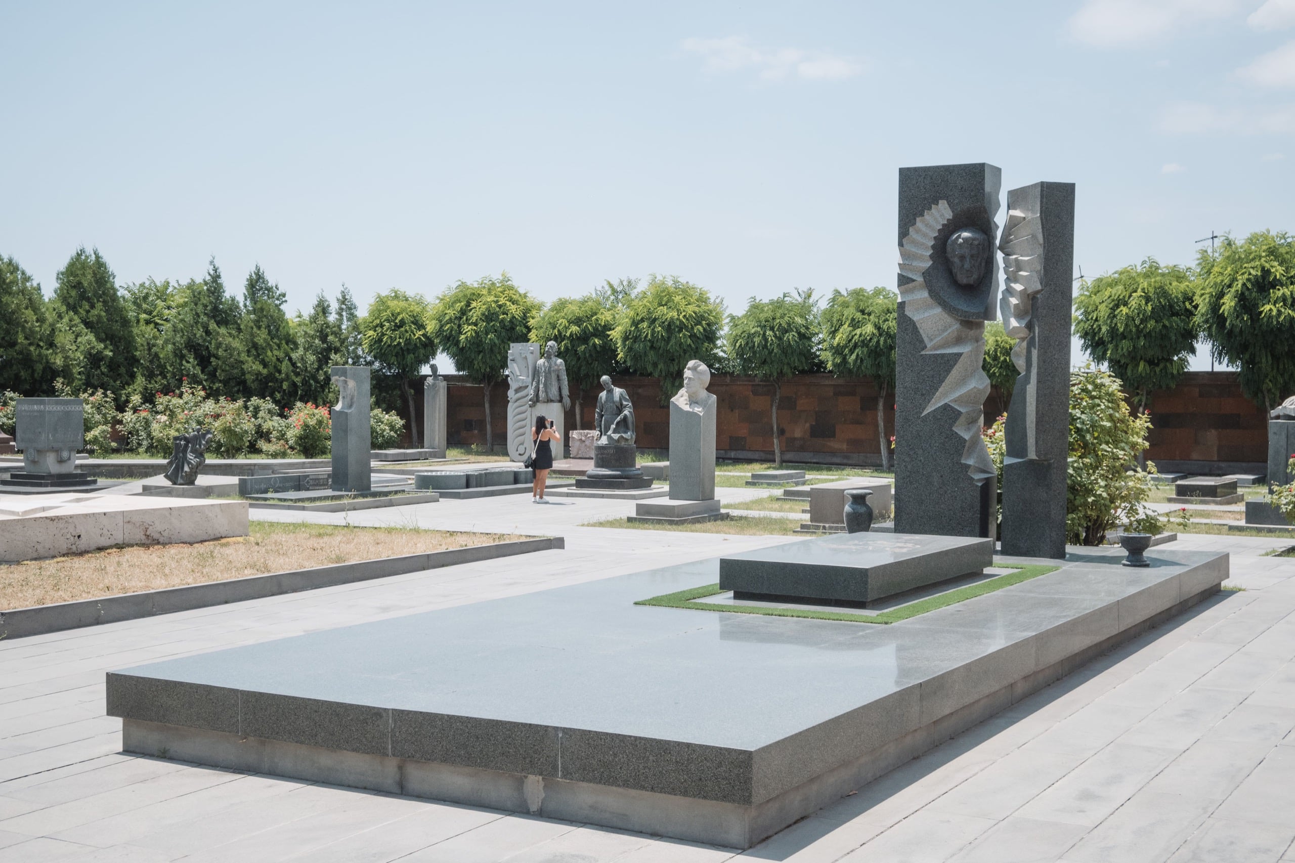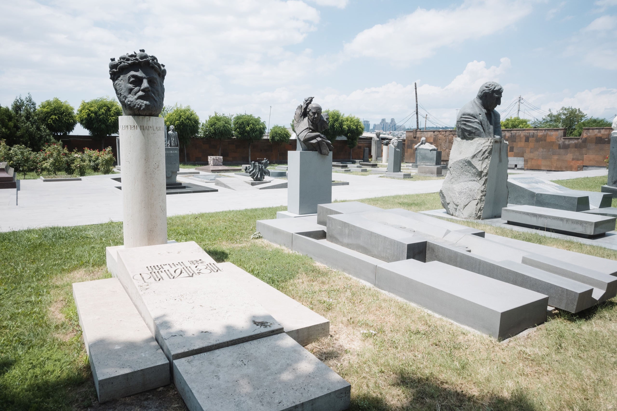 Возле ТЦ перекусили пирожками и направились в сторону парка Комитаса. Меня интересовал не столько сам парк, сколько Городской Пантеон. Хотелось посмотреть на места упокоения таких великих людей как Сергей Параджанов, Фрунзик Мкртчян и многих других.
