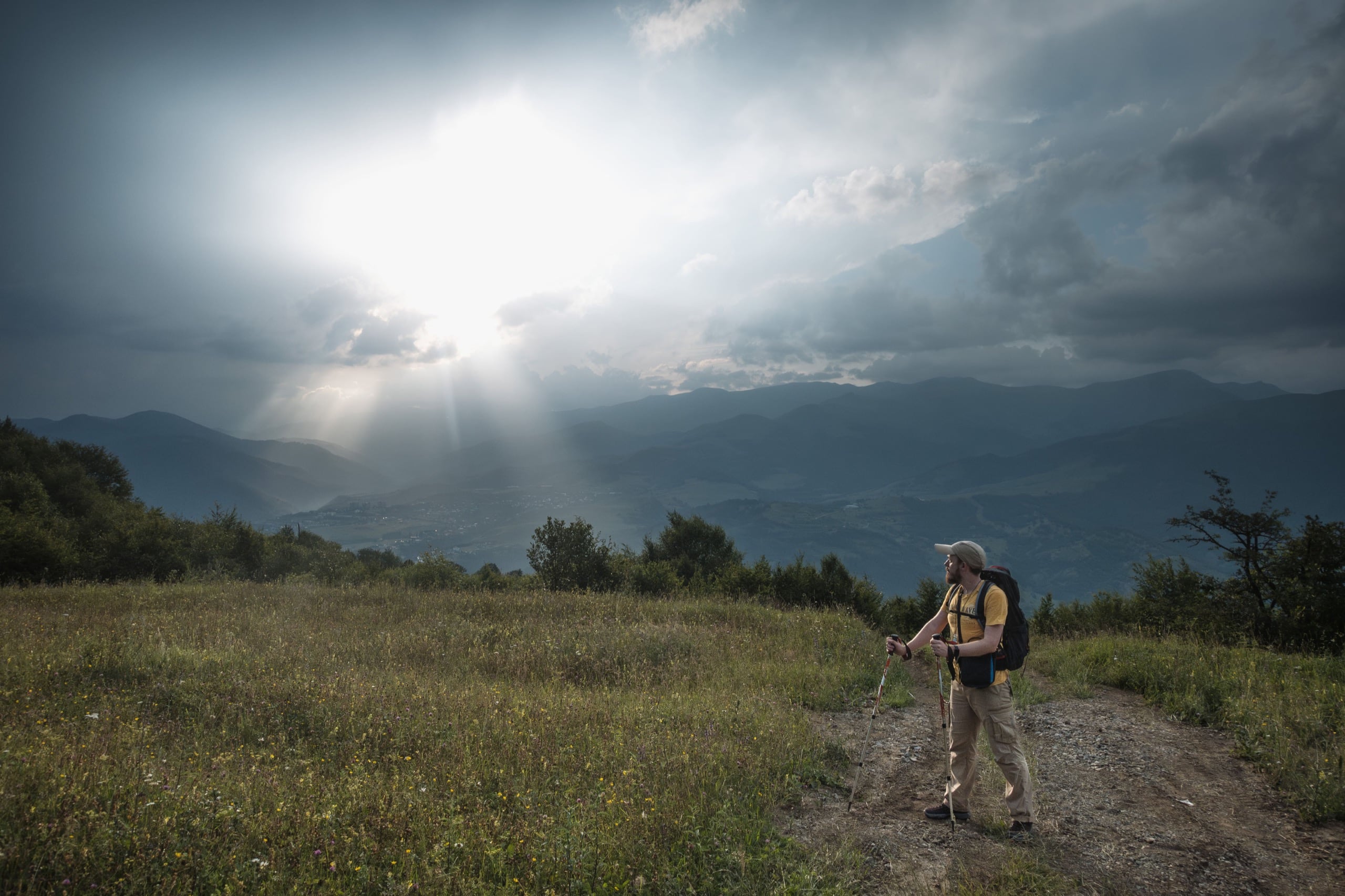 К счастью, не считая тех нескольких капель в начале спуска, непогода нас миновала. А обилие разнородной облачности вокруг, наоборот пошло в плюс — такой красоты насмотрелся! Местами она идти мешала, так как хотелось снимать, снимать, снимать. Когда свет и тень причудливо переплетаются и будто калейдоскоп каждую минуту выдают новый рисунок, в такой момент место на флешке экономить не хочется.