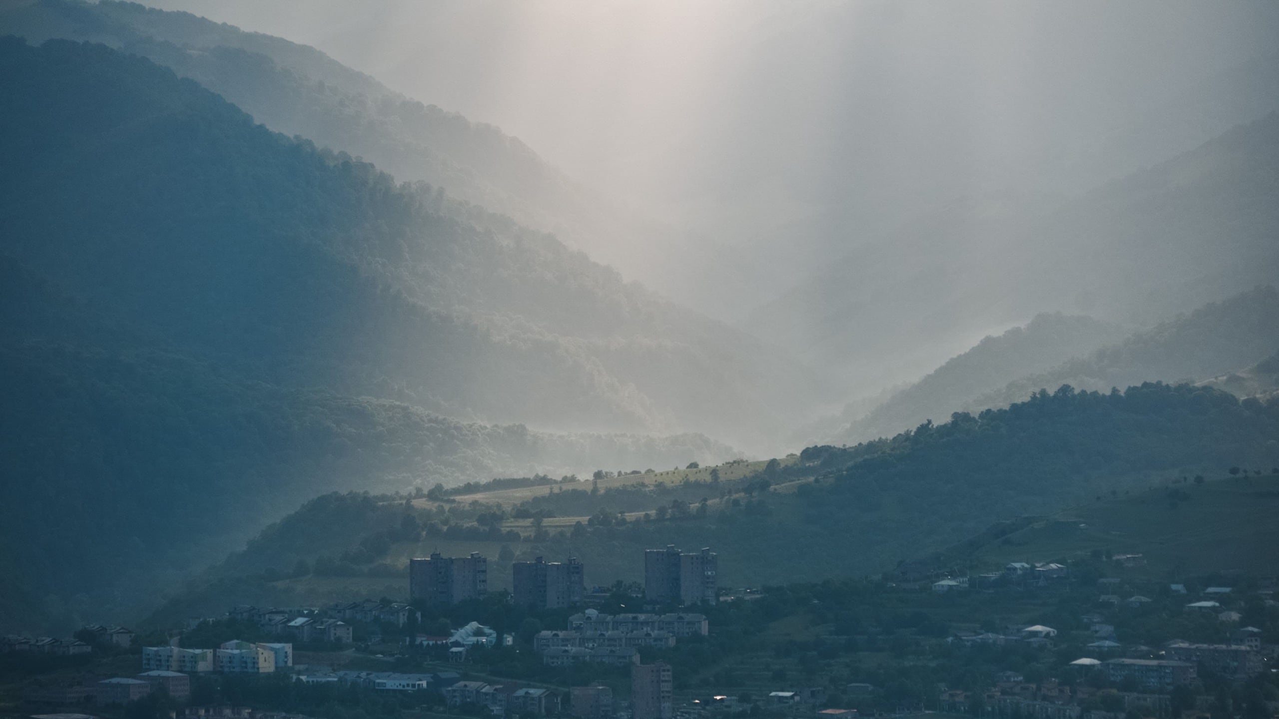 Фото 31. Предзакатный панорамный вид на Дилижан и окрестные горы.