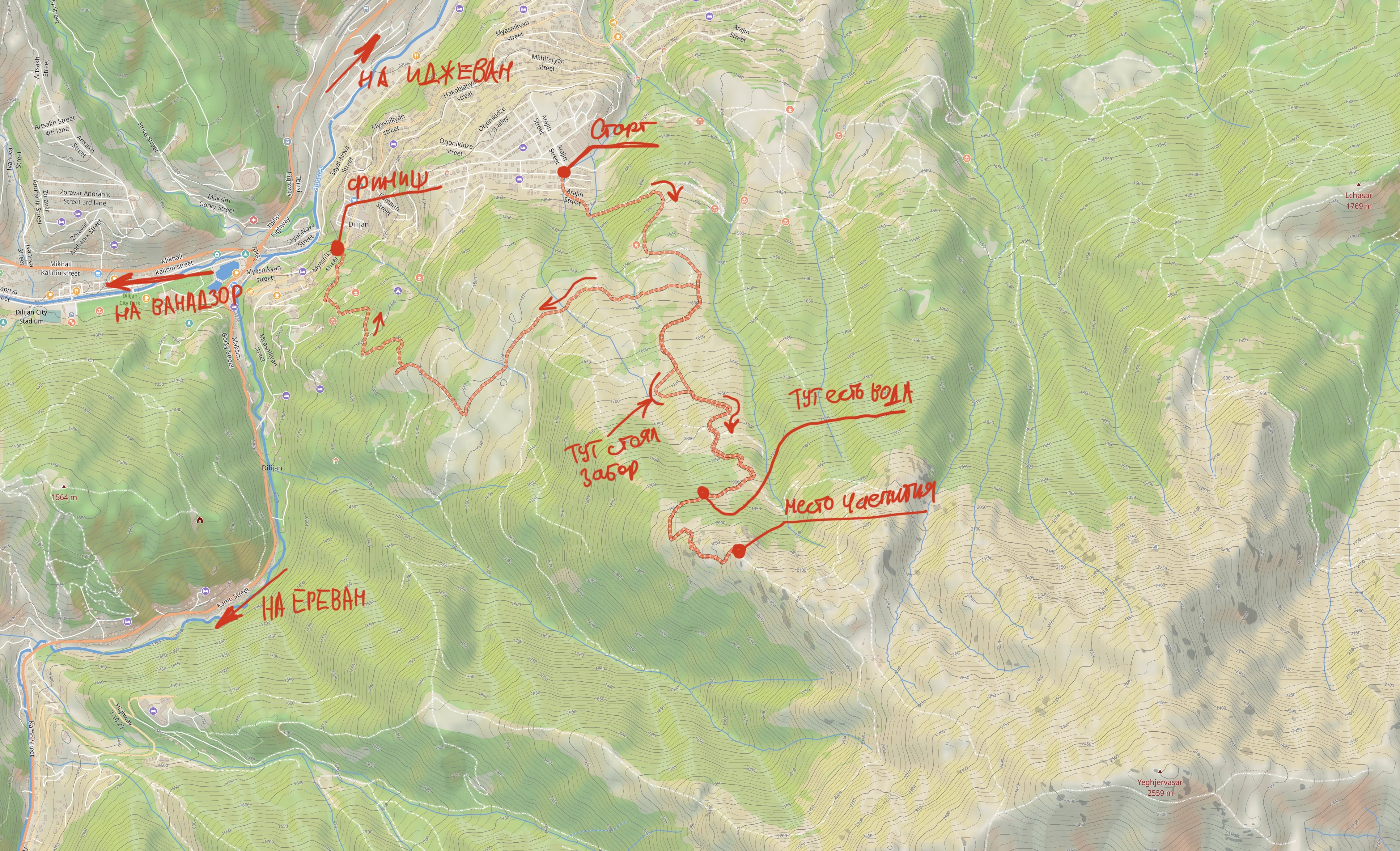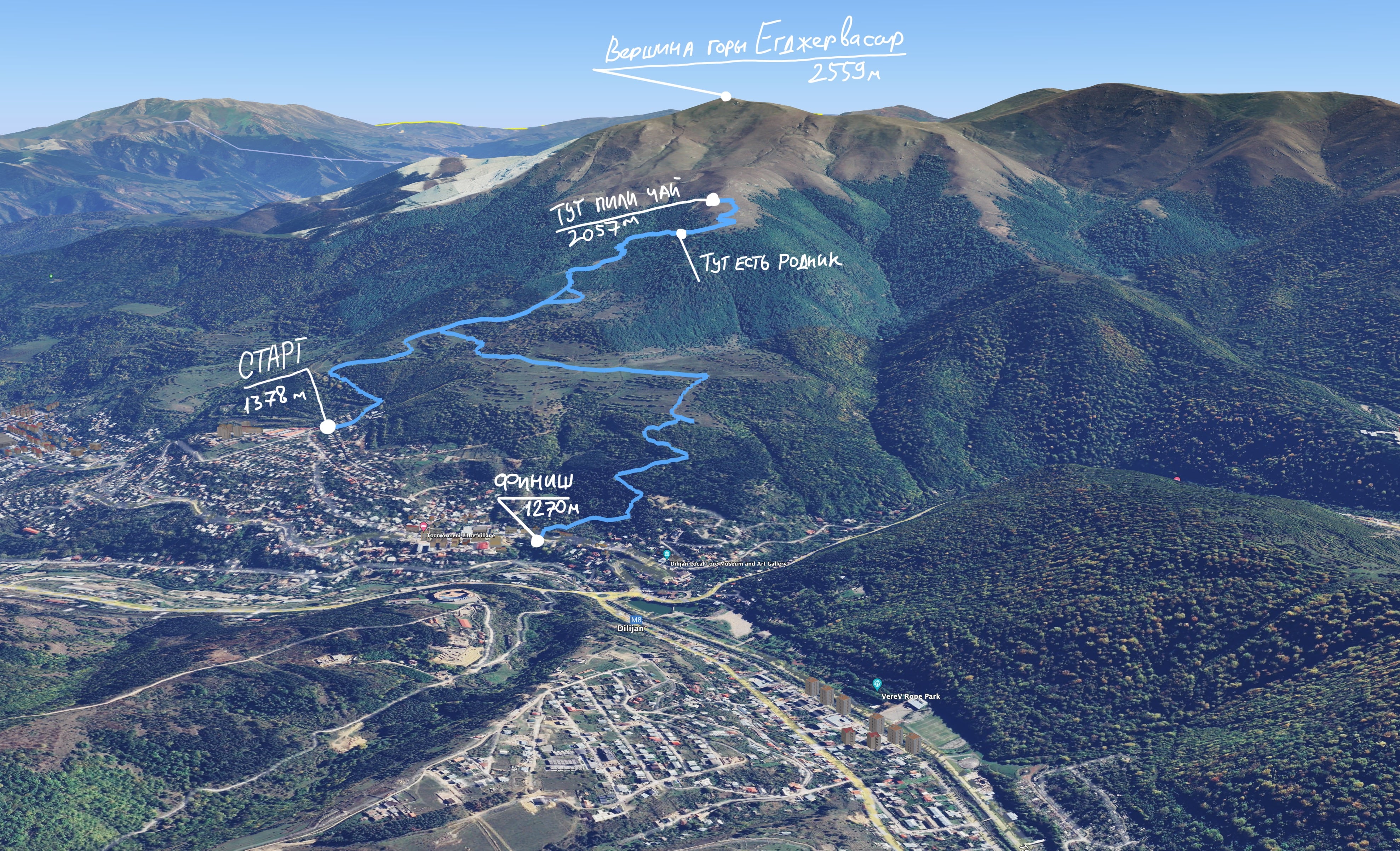 Маршруты обычно, прокладываю я. В этот раз посмотрел на карту и взгляд мой упал на нехоженные горы Егджервасар и Мец Маймех, что подпирают Дилижан с юго-востока. Это большие махины — растут они на два с половиной километра от уровня моря и почти на полтора километра возвышаются над урезом реки Агстев, что приютила на своих берегах Дилижан.