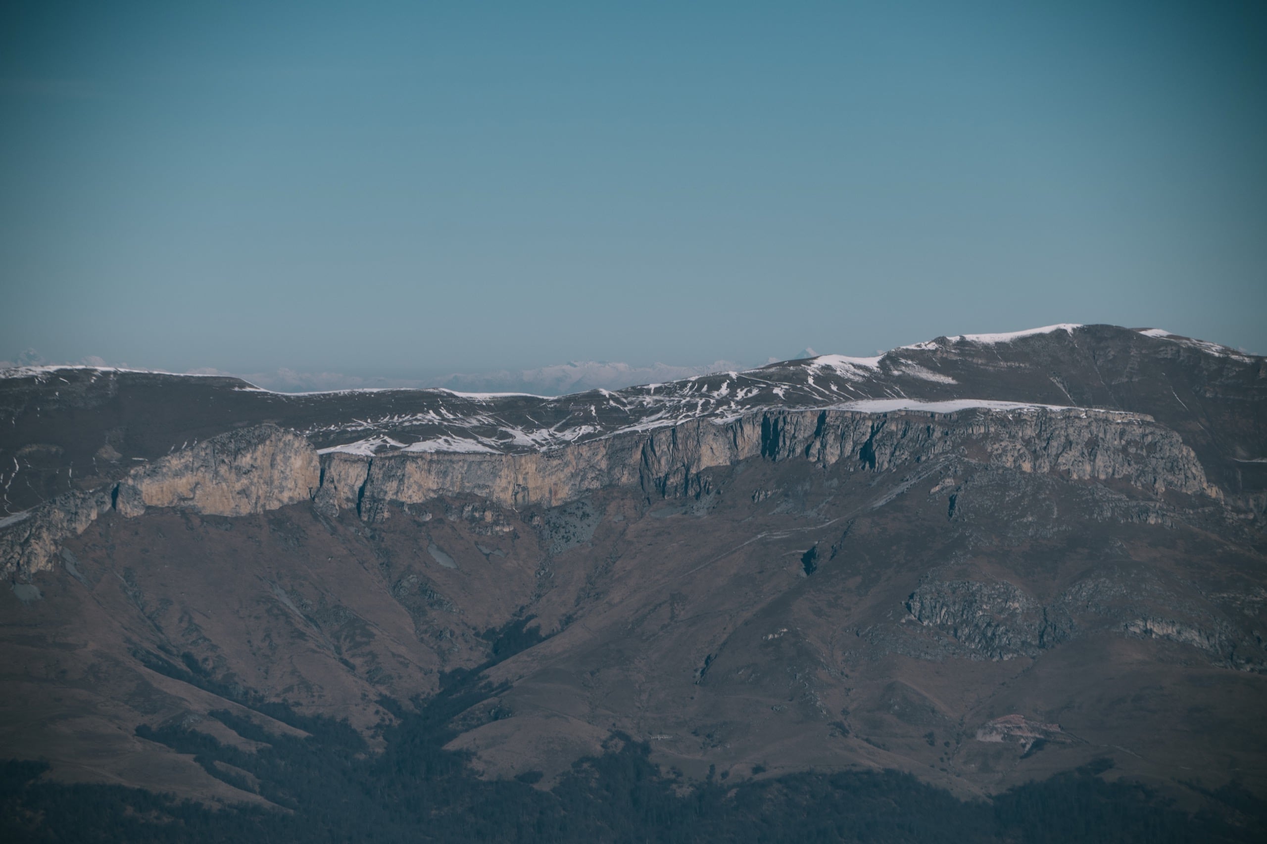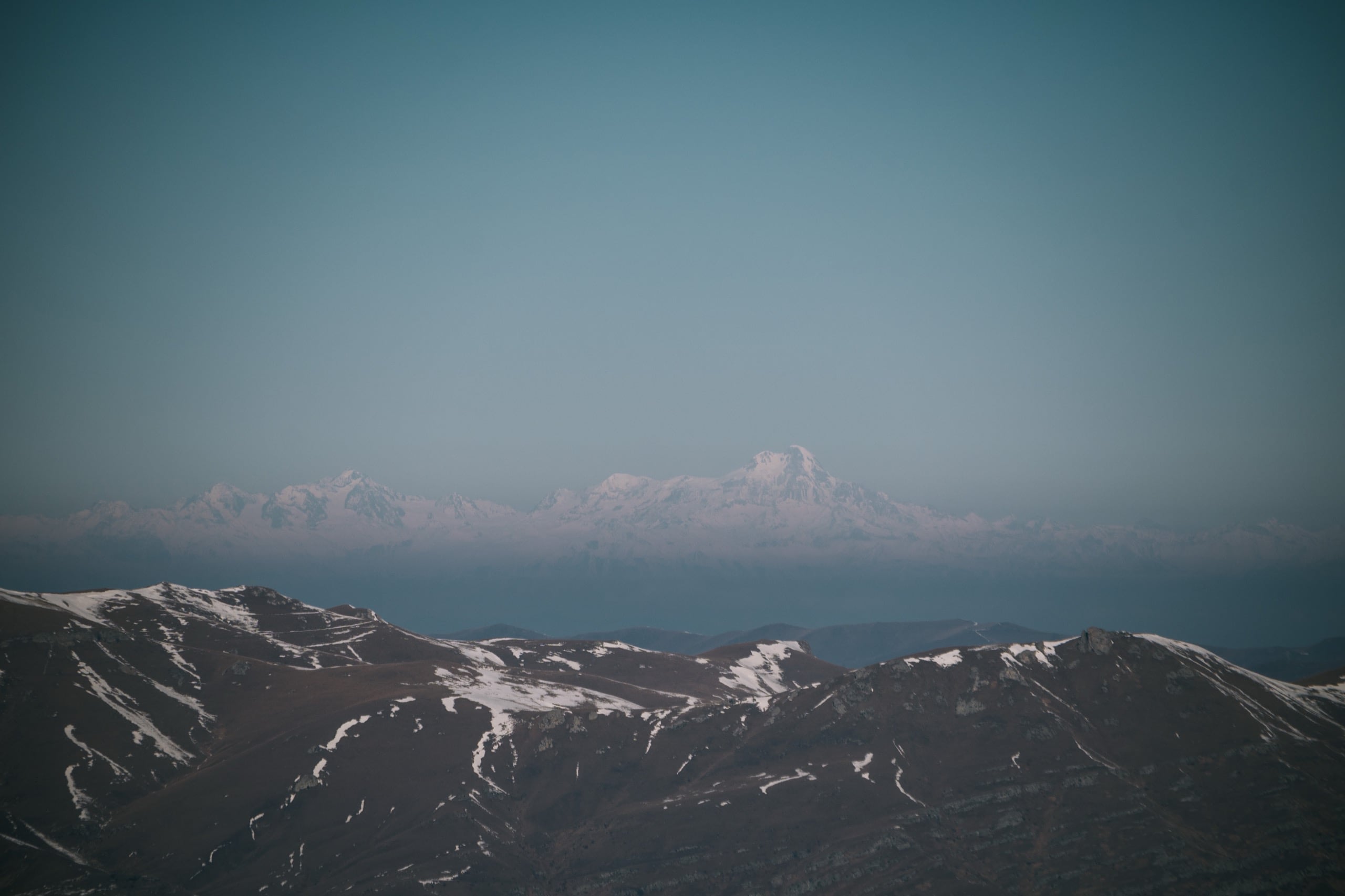 Фото 4. Бурые юго-западные склоны Мец Маймеха слева внизу и почти полностью белоснежная гора Егнасар впереди.