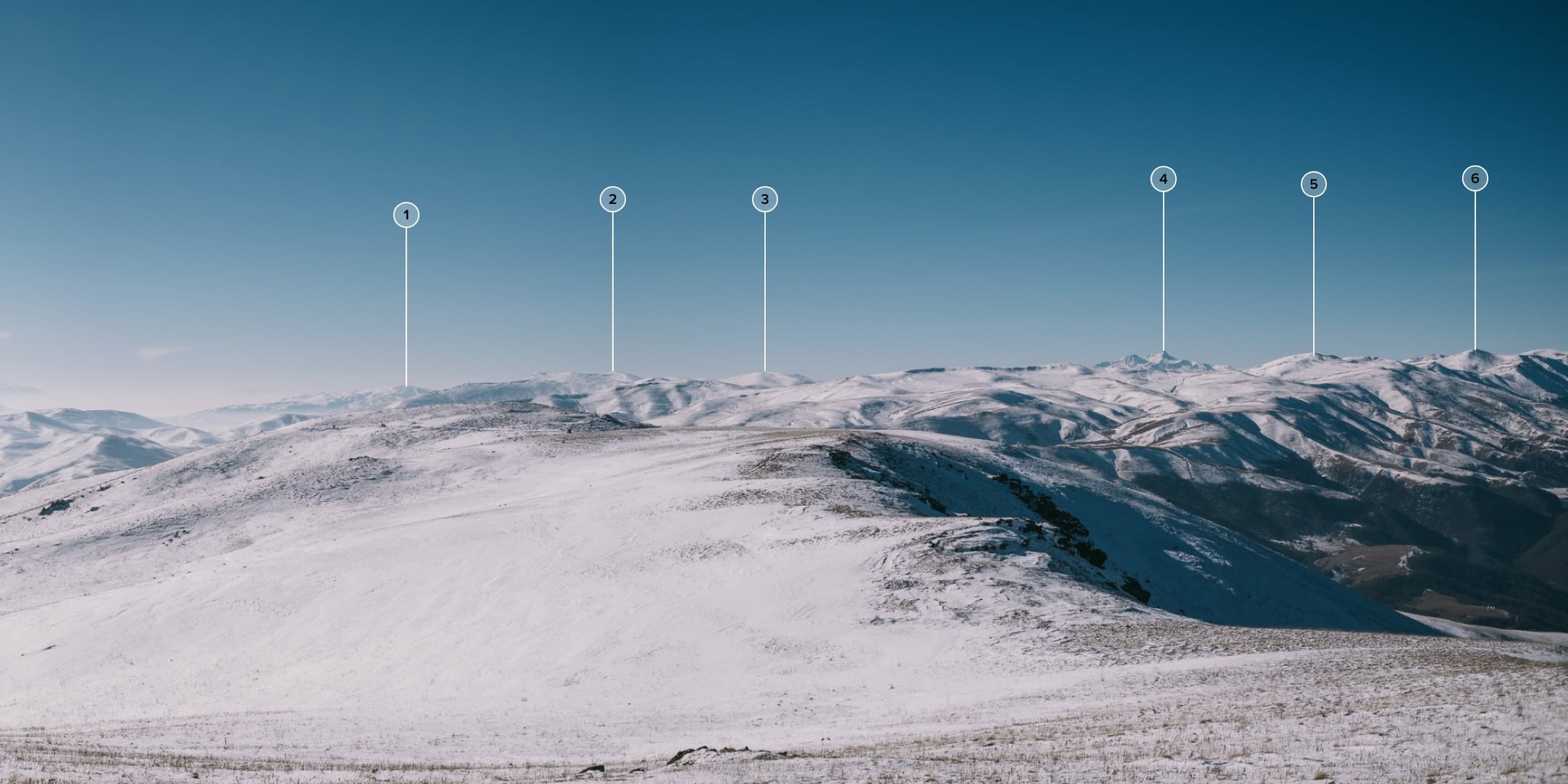 Схема 3. 1) г. Бджнусар, 2588; 2) г. Цахкуняц, 2821; 3) г. Чингил, 2822; 4) г. Арагац, 4090; 5) г. Гомасар, 2843; 6) г. Ампасар, 3052.