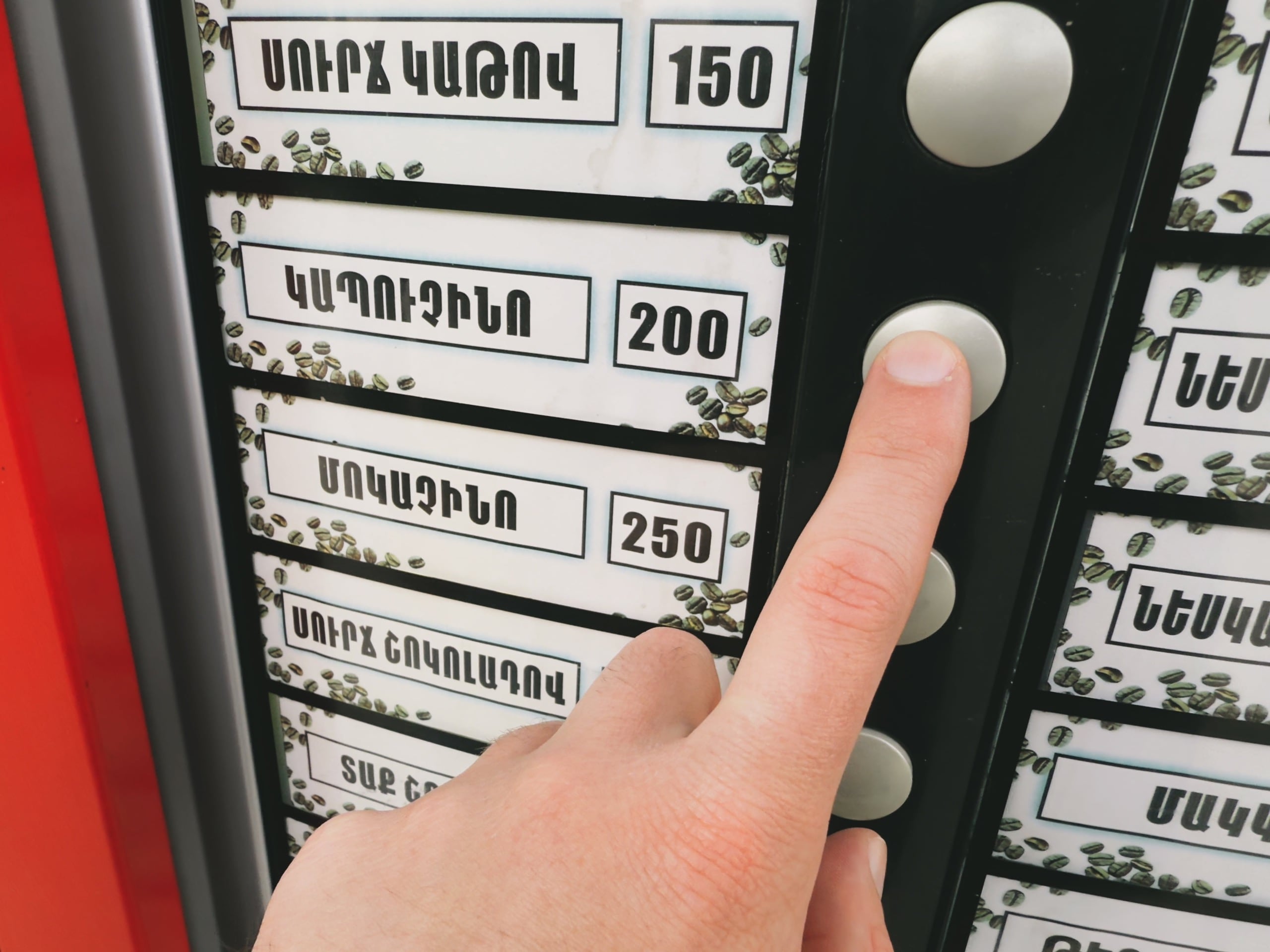 - Капучино в кофейном автомате: 200 AMD / 42 ₽ / $0,53