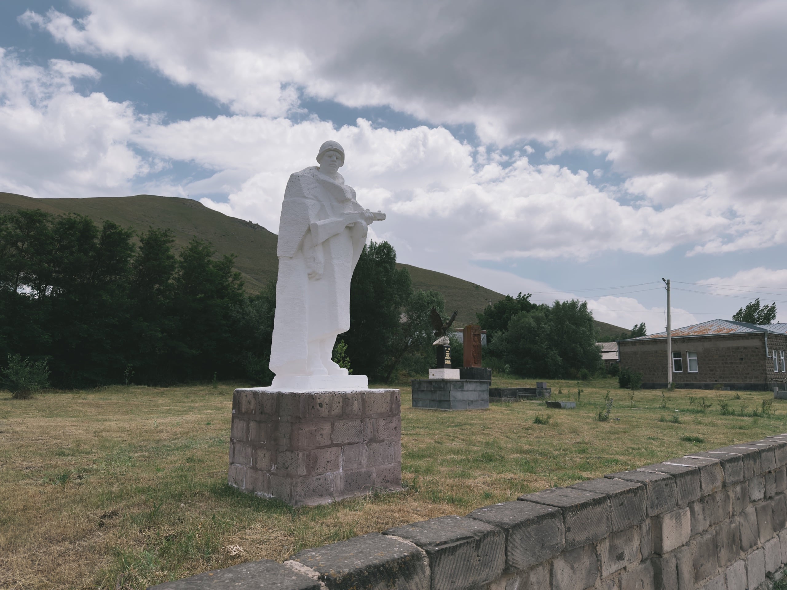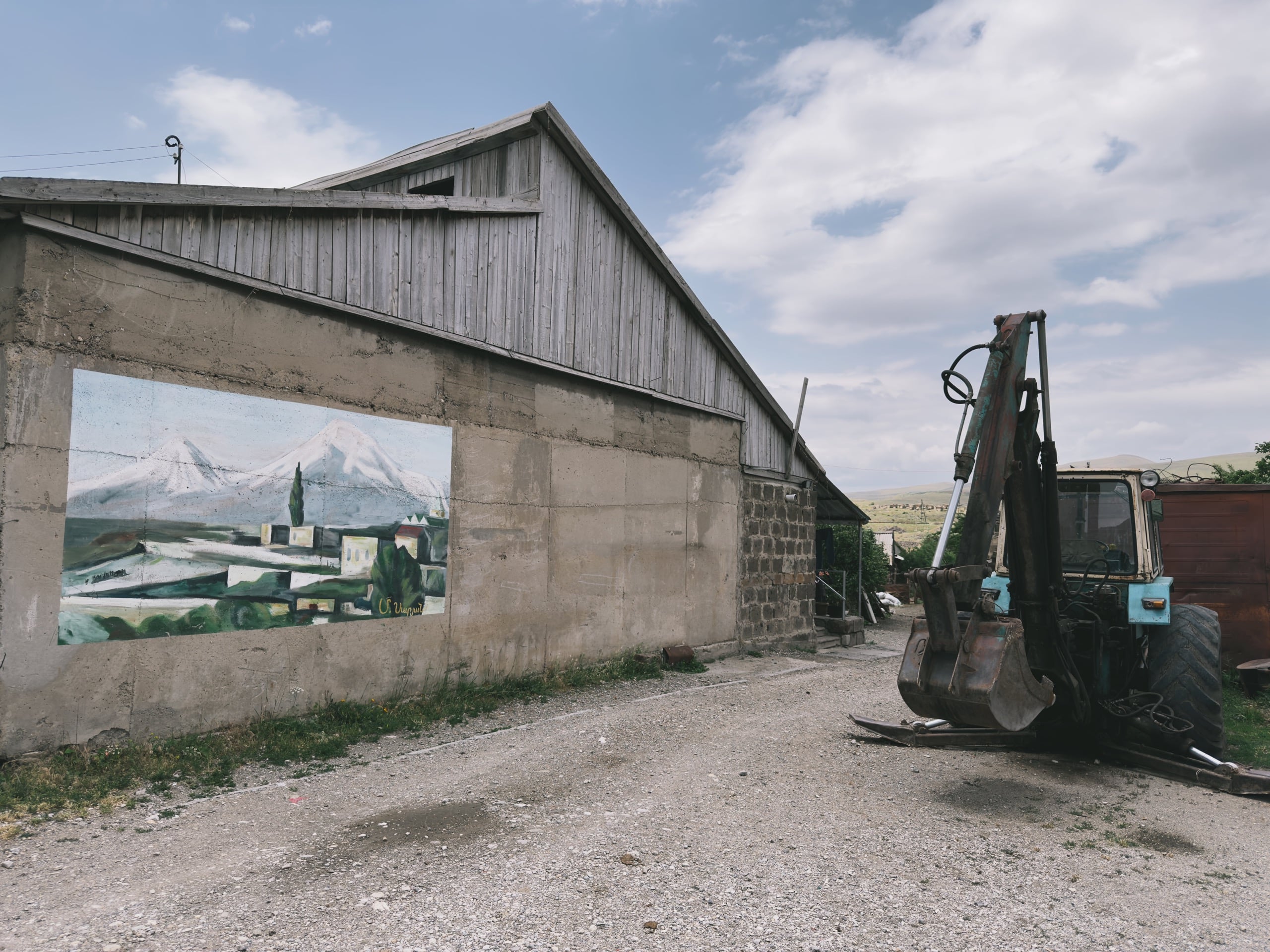 Помимо музея в деревне есть пара памятников: фрагмент разрушенного здания (предположу, что это жертвам землетрясения, но это не точно), а также мемориал в честь павших в Великой Отечественной войне. Плюс на стене одной хозяйственной постройки я обнаружил классный мурал с видом Арарата. Ещё есть церковь, но она в этот раз осталась в стороне, поэтому ничего сказать не могу.