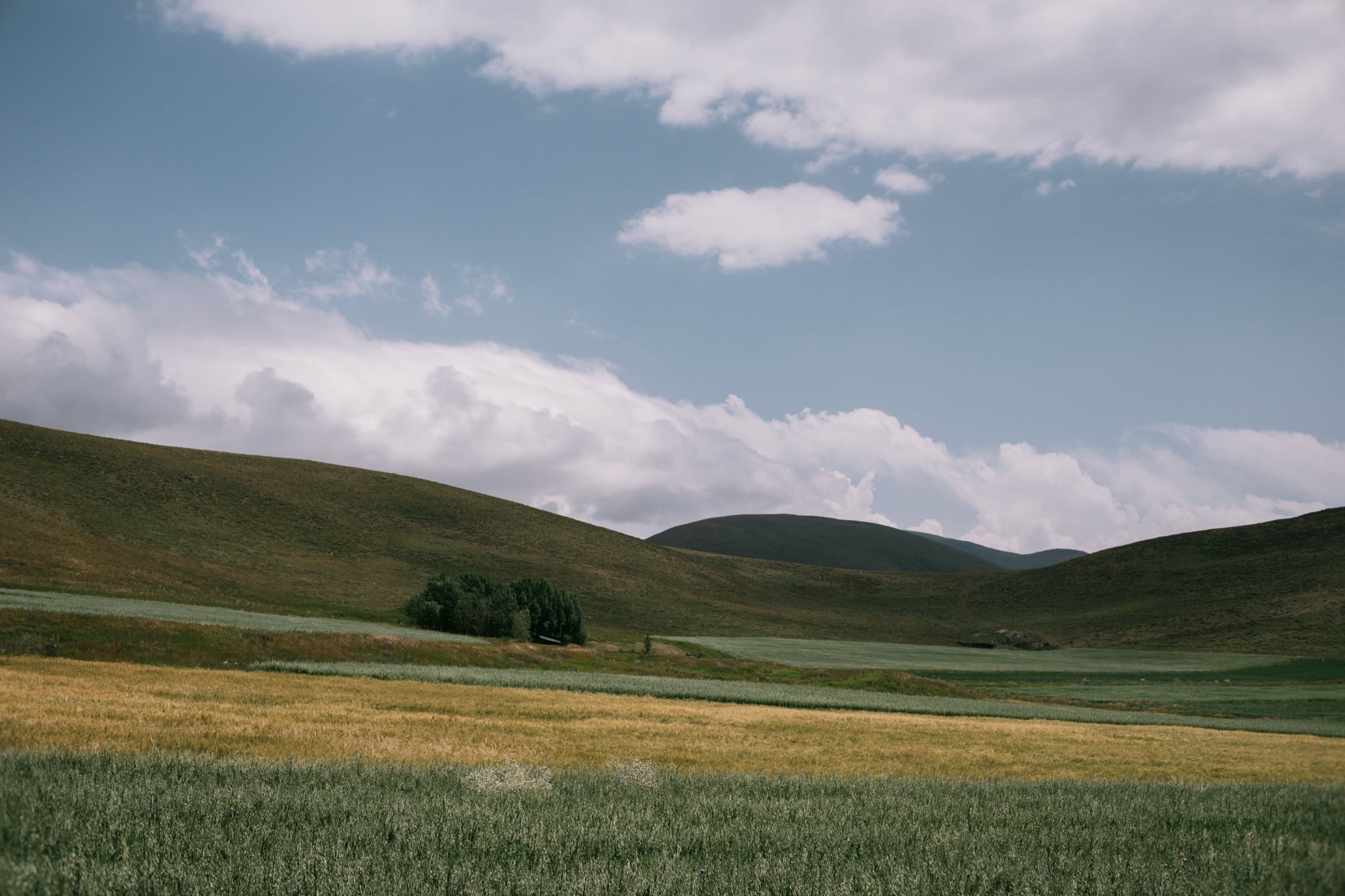 А сама дорога прекрасна. Машин нет, вокруг пасторальные сельские ландшафты, окружённые покатыми склонами относительно невысоких горных хребтов. В цветах преобладали выгоревшие блеклые оттенки зелёного, но местами их разбавляли рыжие, или наоборот, сочно-зелёные лоскуты возделанных участков.