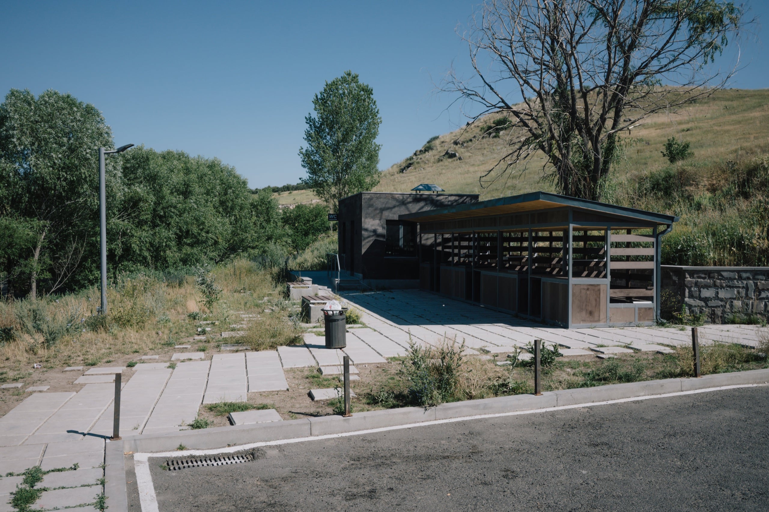 У въезда появился ларёк с едой, лотки для торговцев сувенирами, туалет, парковка.