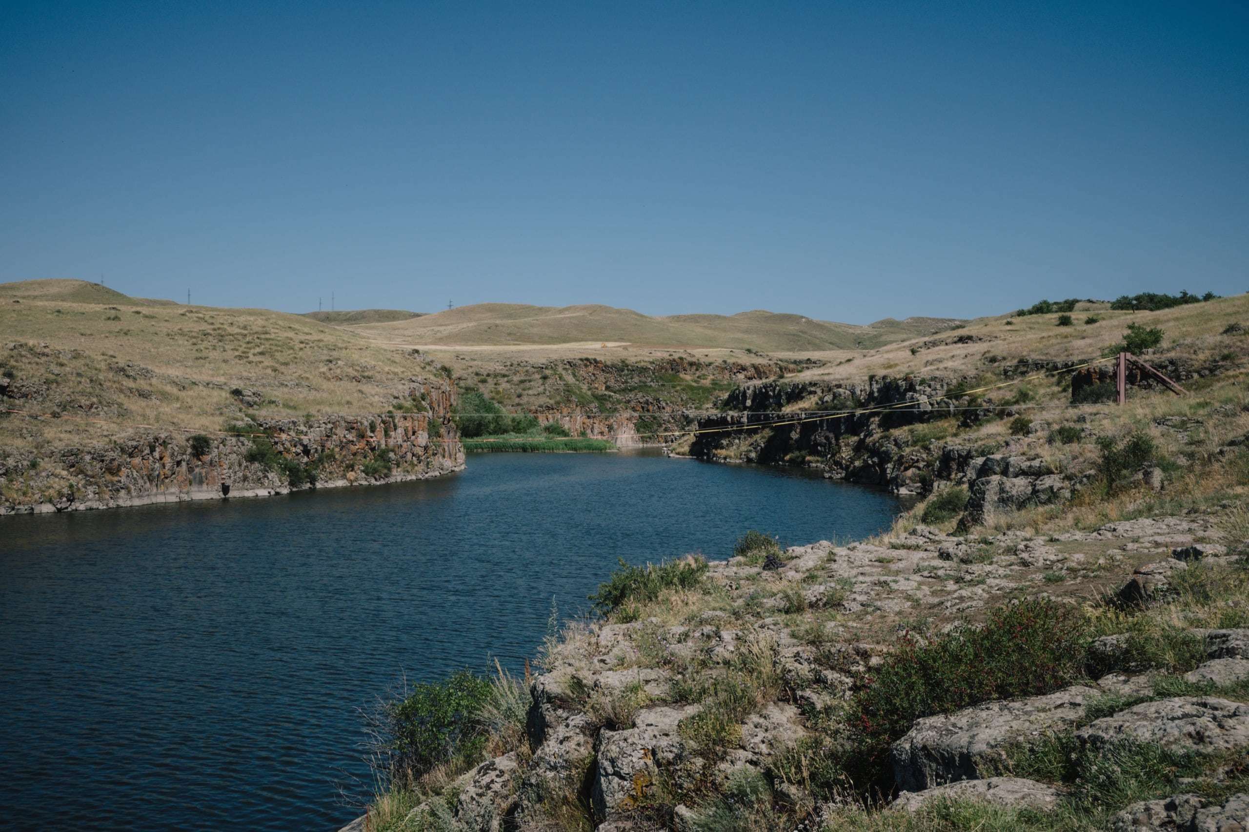 Кстати, для тех кто не знает, напомню. Ахурян — не такая широкая река. Местами он вообще чуть ли не ручей, особенно в сухую пору. Возле монастыря его запрудили и так образовалось небольшое водохранилище, которое и наблюдает турист, посетивший место.