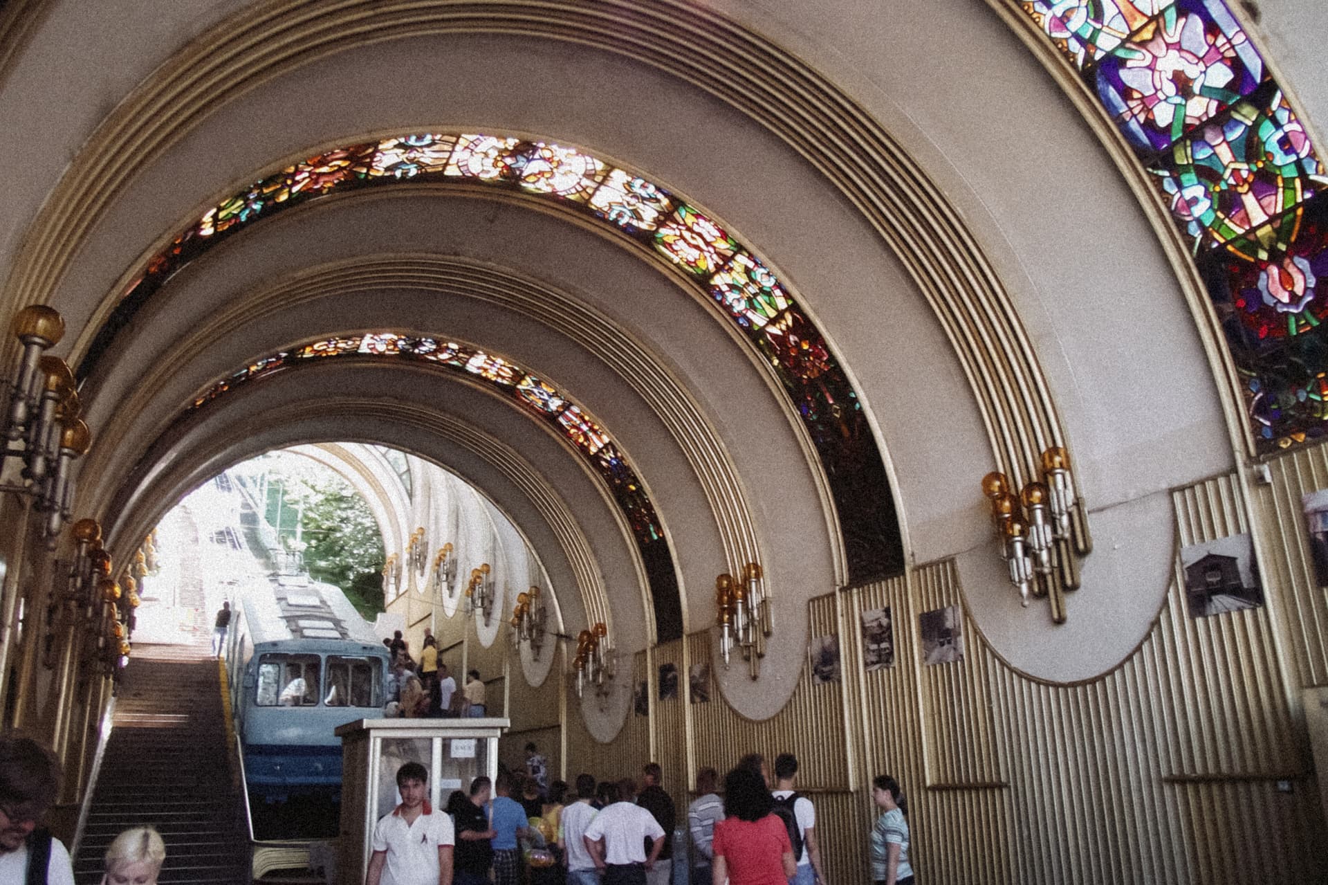 С него поднялись на Владимирскую горку и всё лишь для того чтобы снова спуститься, но не просто так, а на фуникулёре.