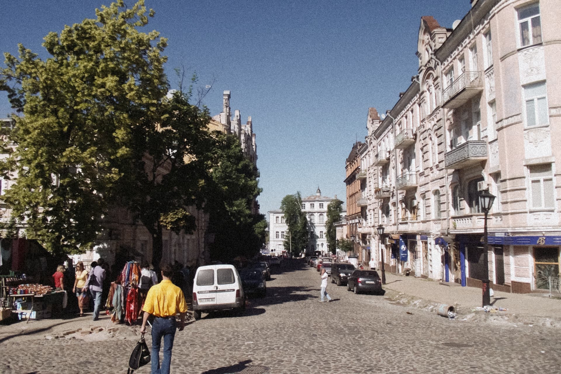 Пересекли шикарную мощёную улицу — Владимирский спуск.