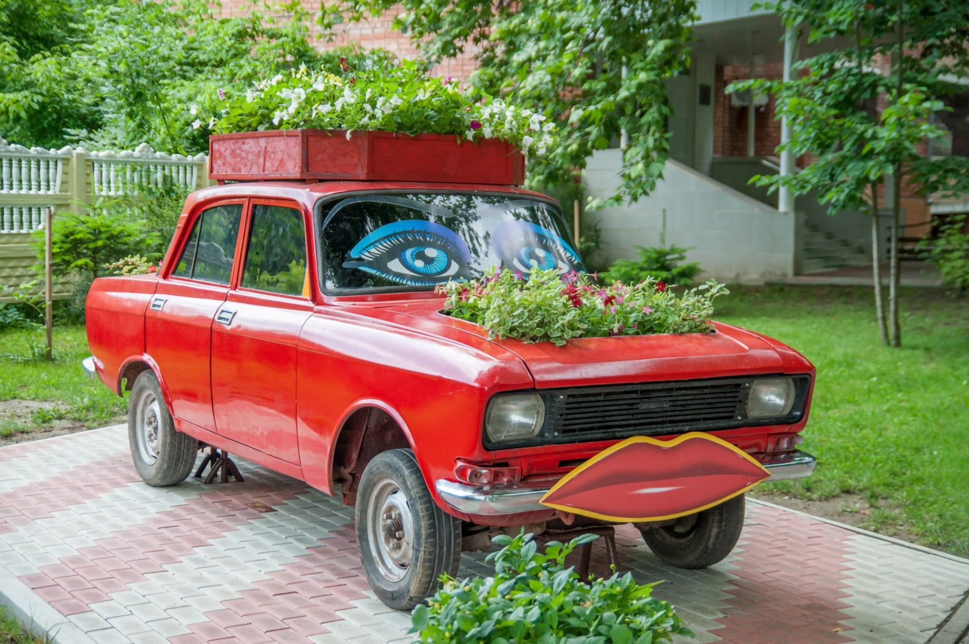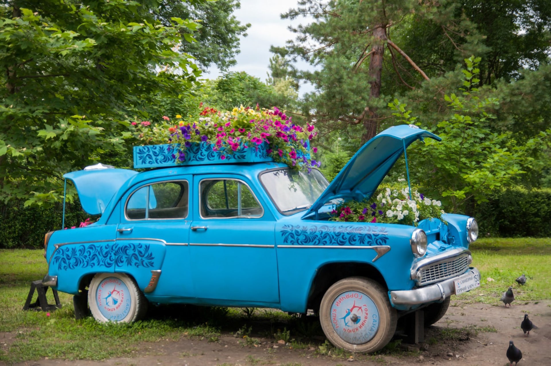А где же сами «клумбомашины»? Да вот они. Два чудаковатых «Москвича».