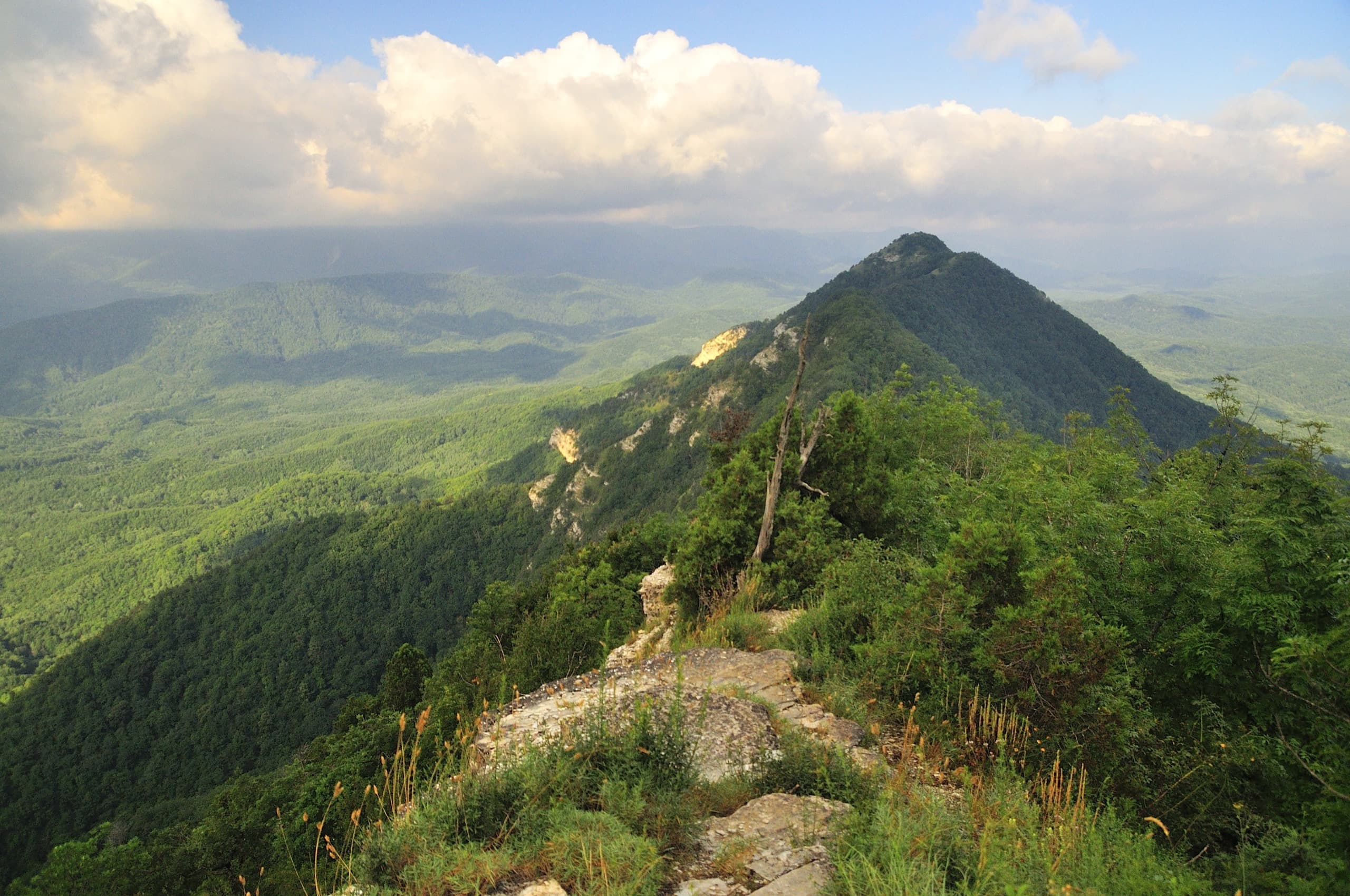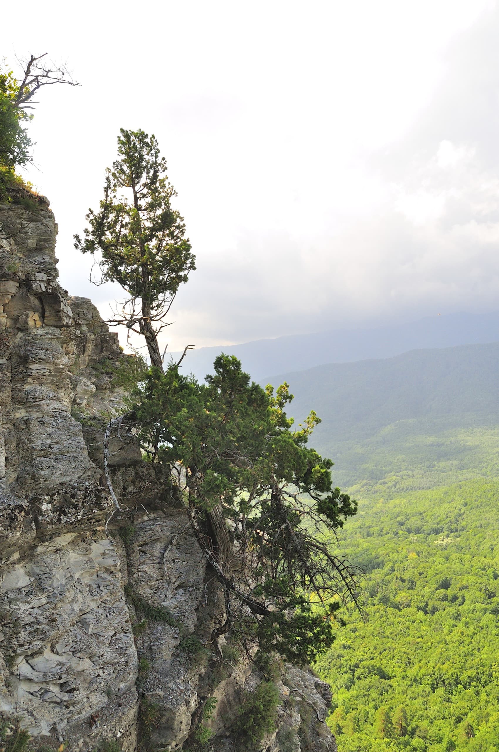 Когда мы выбрались из леса взору открылся невероятной красоты вид. Справа и слева поляна круто обрывалась. Крутые, укрытые лесом склоны уводили взгляд в пропасть. Местами зелёный ковёр рвали мощные скальные выходы. А впереди каменная громада! Скала казалась неприступной, но я знал, что она проходима. Наверху наша цель — одна из вершин Папая. Лёха задрал голову и спросил меня: «Нам туда»? Я кивнул. «Ты дурачок» — с ухмылкой ответил друг и полез первым.