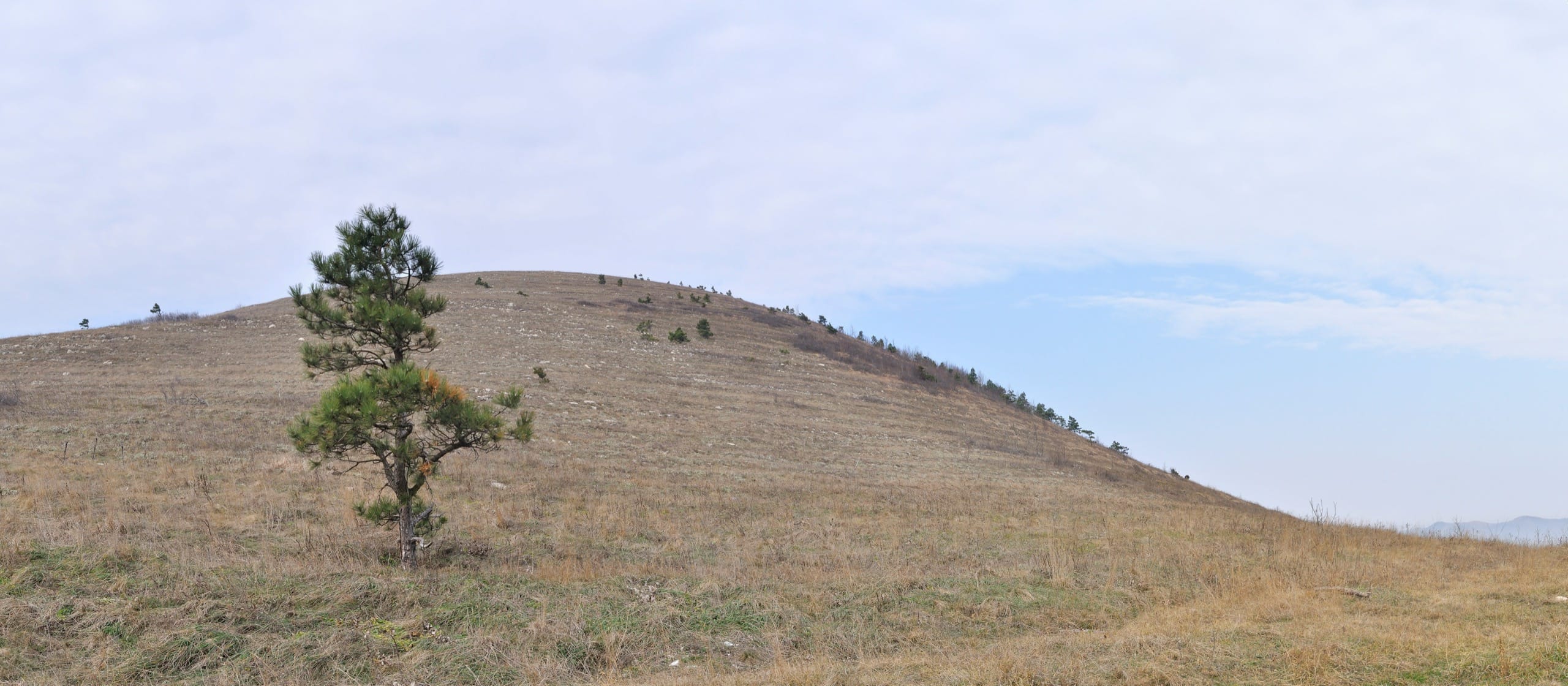 За 639-й высотой, когда мы вышли из очередной полосочки леса перед нами предстал склон, нарезанный аккуратными кругами, почти такие же полосы, о которых я писал чуть выше, только меньше размерами. Что это? Естественность таких аккуратных образований отмели сразу. У меня возникло предположение, что это следы некогда бывших на этих склонах виноградников, однако истина оказалась куда интереснее.